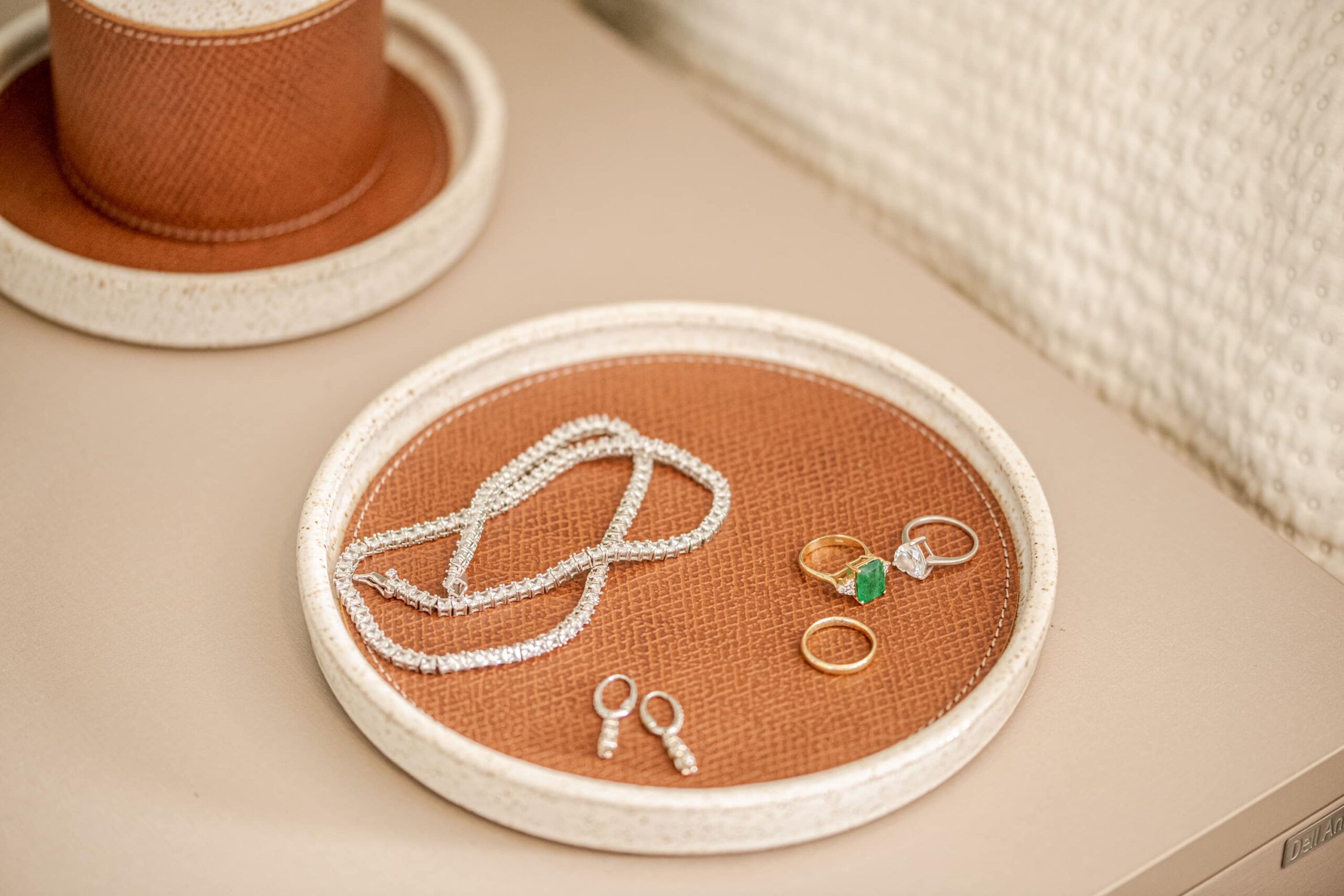 Bandeja de cerâmica e tapete em couro natural removível em 5 opções de couro é um charme e pode ser usada em inúmeras funções!