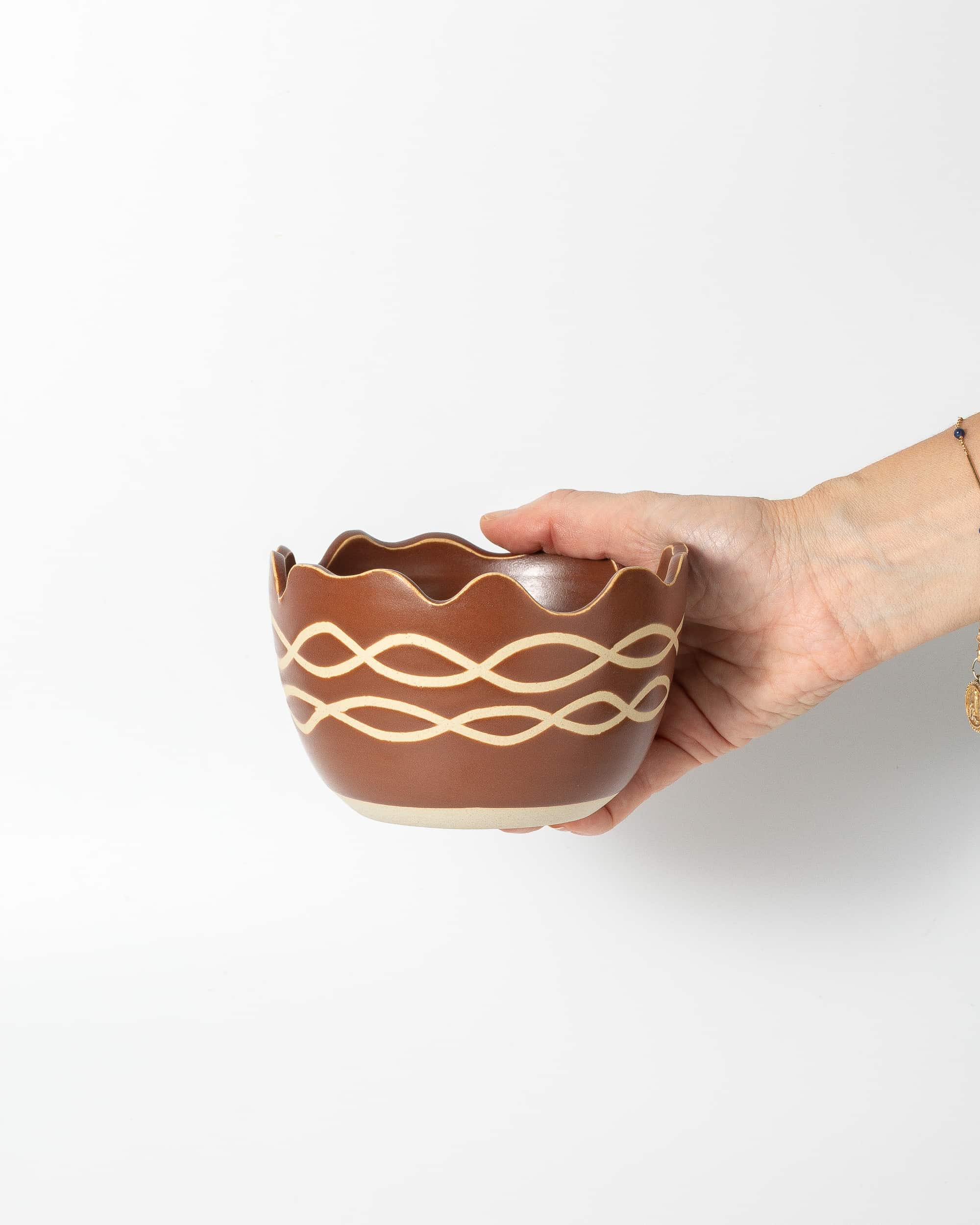 O Bowl traço natural foi desenvolvido para a Páscoa desse ano de 2026 como uma casca de ovo recém-rompida, trazendo bordas onduladas a delicadas. Em 2 cores (chocolate e verde mata) e com desenhos orgânicos que tornam cada peça única.