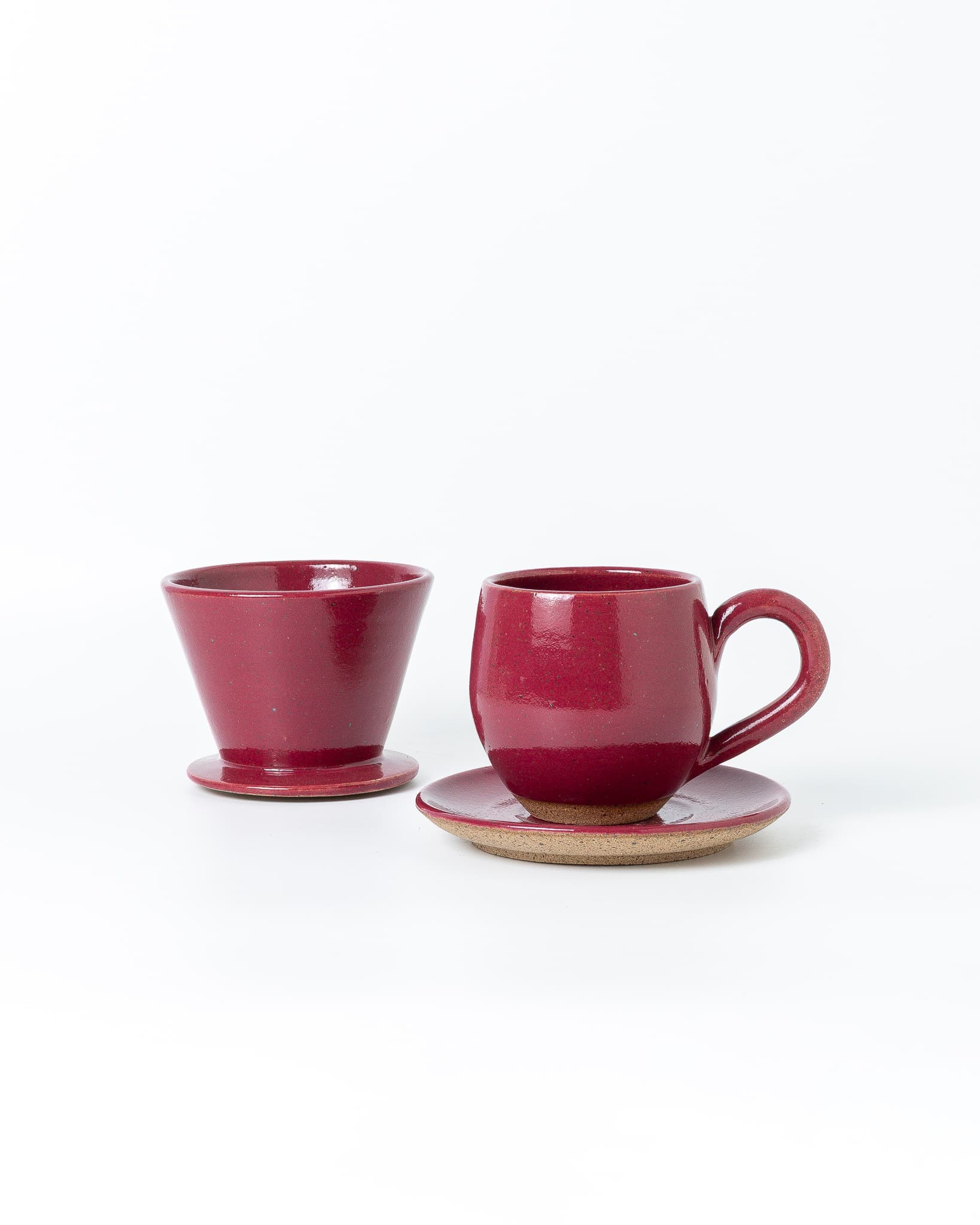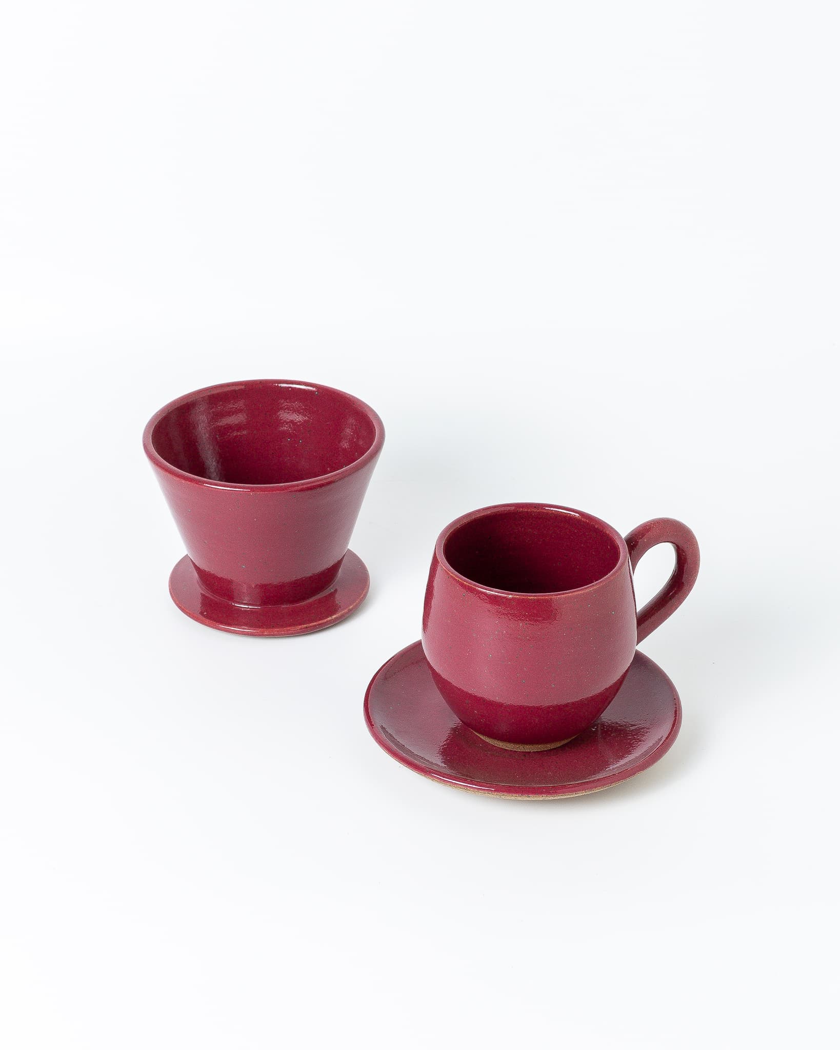 Coador em cerâmica pequeno para filtro de papel 102 e nossa xícara Évora. Dupla ideal para preparar aquele cafezinho fresco, onde quer que você esteja.