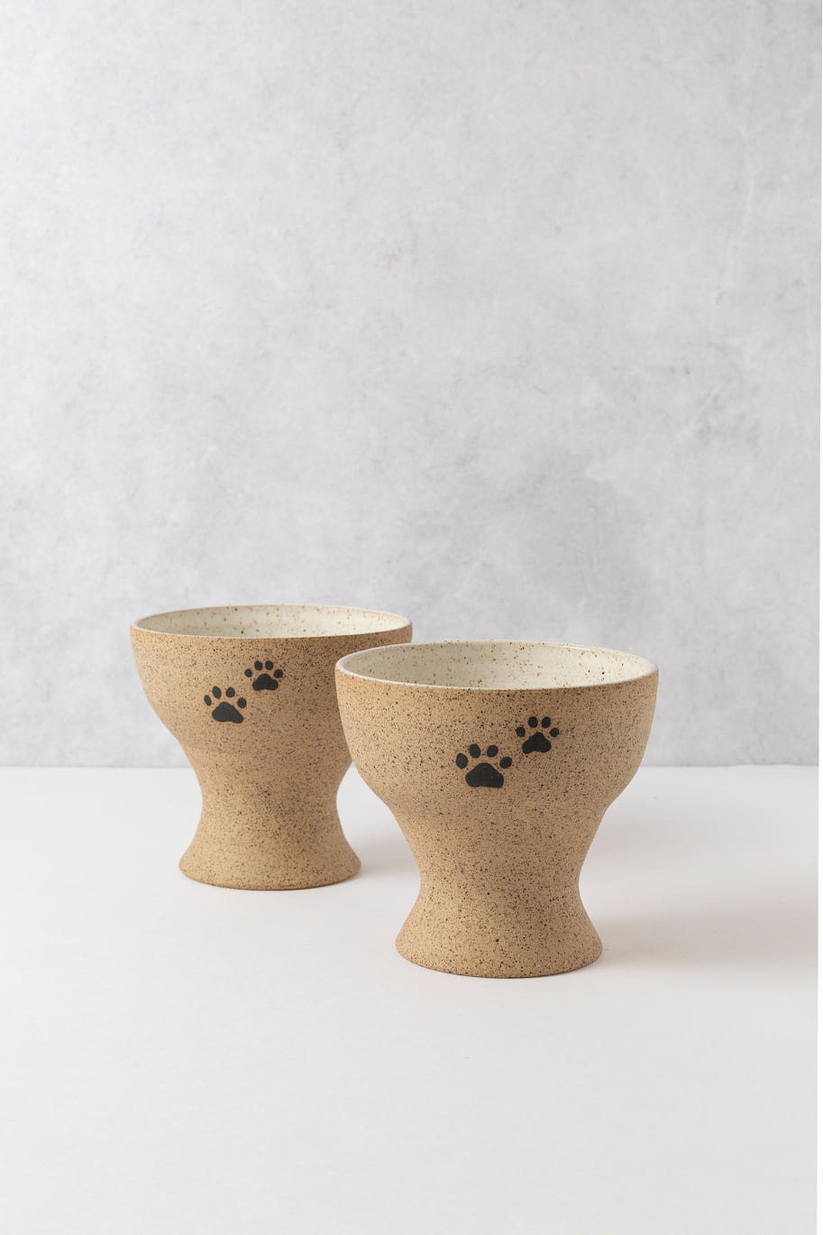 Comedouro e bebedouro para gatos. Especialmente pensado para os felinos amados: mais altos, na altura do início do peito, sem precisar que o gatinho abaixe demais a cabeça, melhorando o conforto na hora das refeições e proporcionando uma melhor digestão. Uma peça versátil: pode ser usada pra ração seca, comida úmida, guloseimas ou também para água. A cerâmica mantém a temperatura da água sempre fresquinha! E você ainda pode personalizar com o nome do seu Pet.