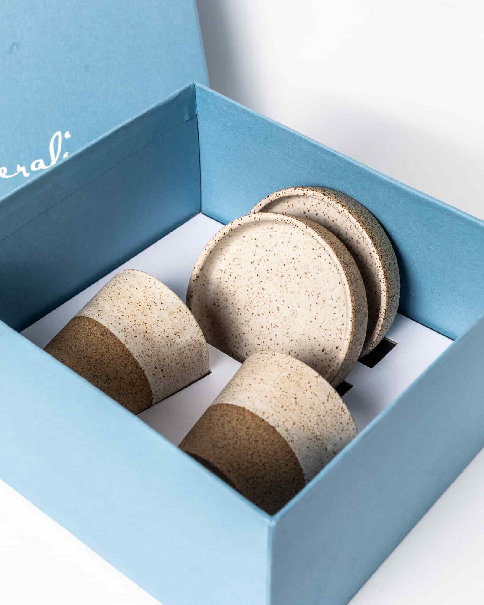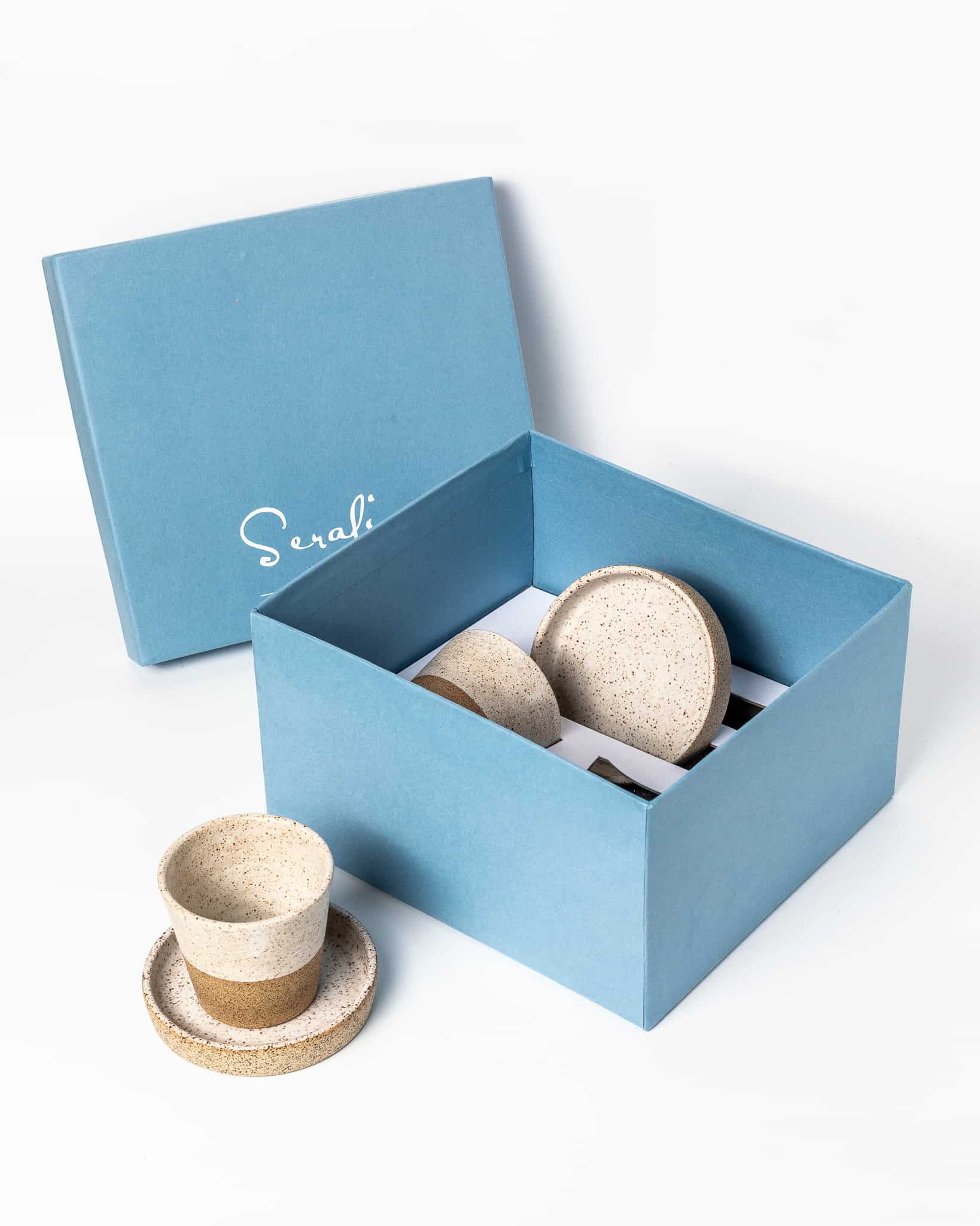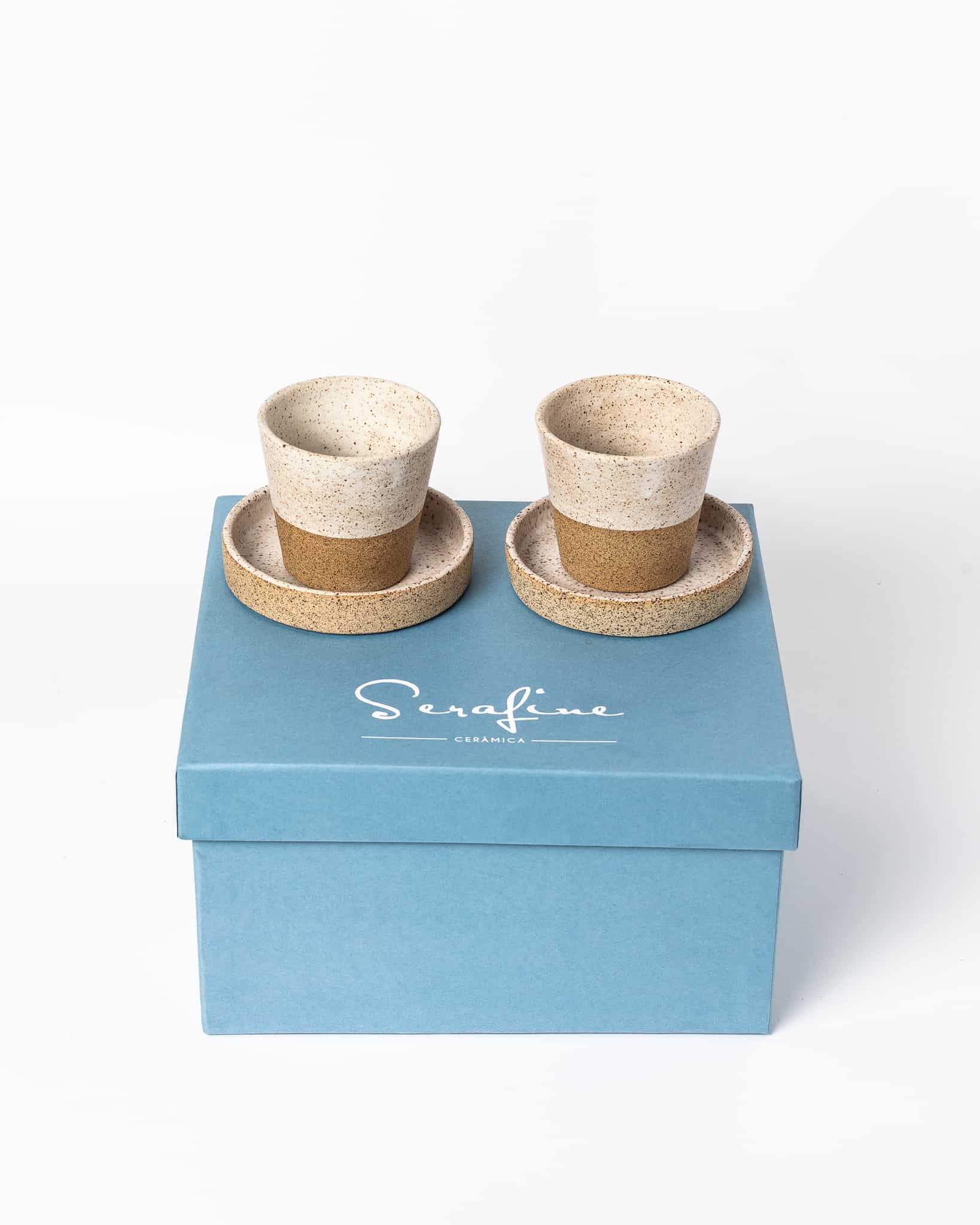 Copo café Lisboa Special Gift Duo. Conjunto de 2 copos para café Lisboa com pires borda reta. Ideal para bebidas quentes ou frias. Nessa linha “Special Gift”, as peças acompanham a caixa de presente personalizada.