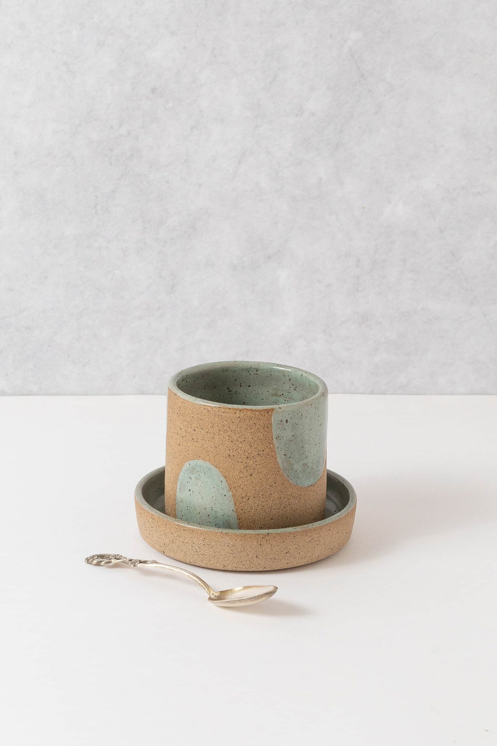 Copo para café Porto com pires borda reta. A linha esfera traz desenhos feitos à mão livre. Ideal para bebidas quentes ou frias.