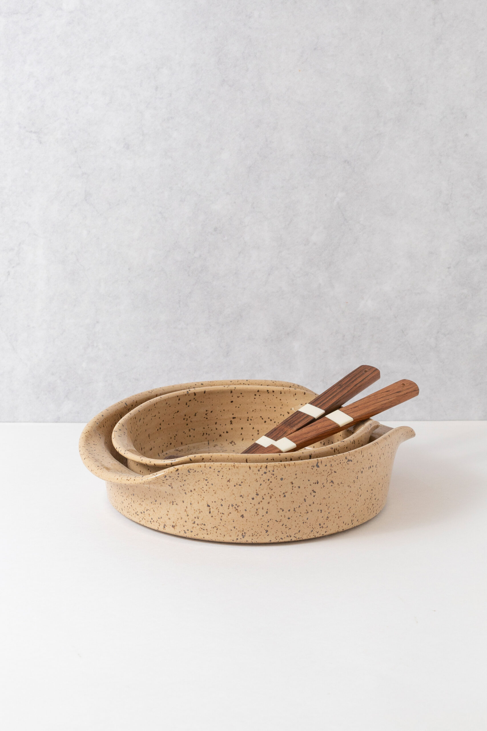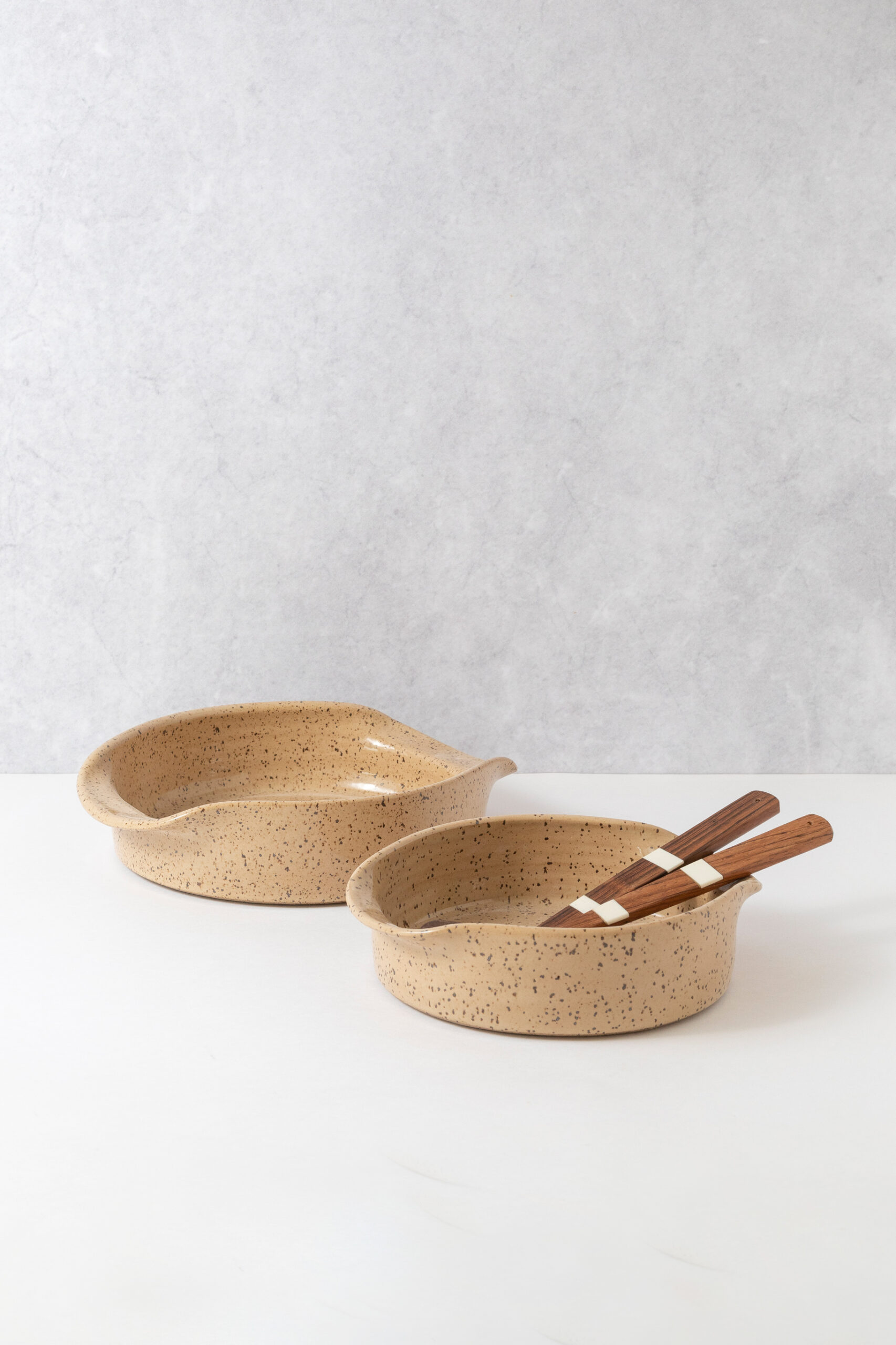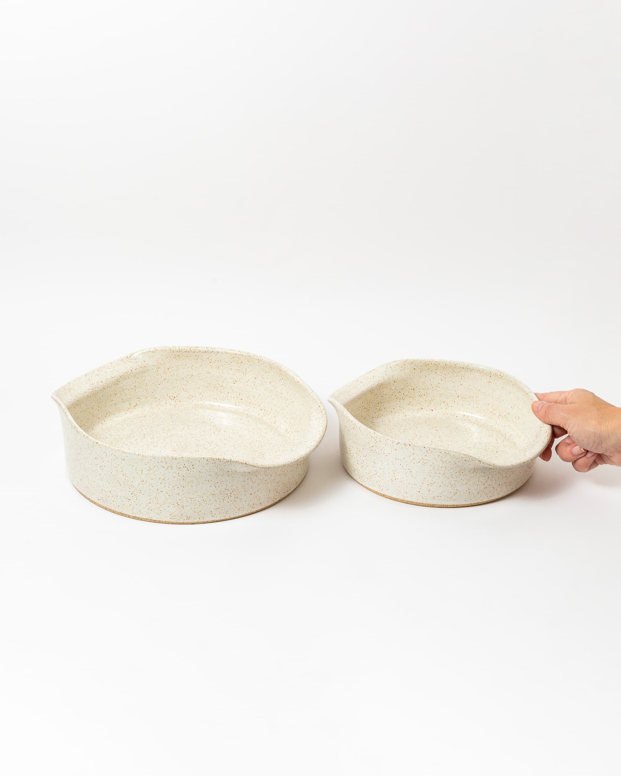 Travessas que acrescentam um toque artesanal a qualquer mesa. Dupla de travessas Nazaré. E sempre atentos aos detalhes, em lugar das alças, optamos por puxadores orgânicos moldados ainda no torno, na finalização da peça. Ideais para o dia a dia. Peças curinga na hora de levar as refeições à mesa. Não são vendidas separadamente.