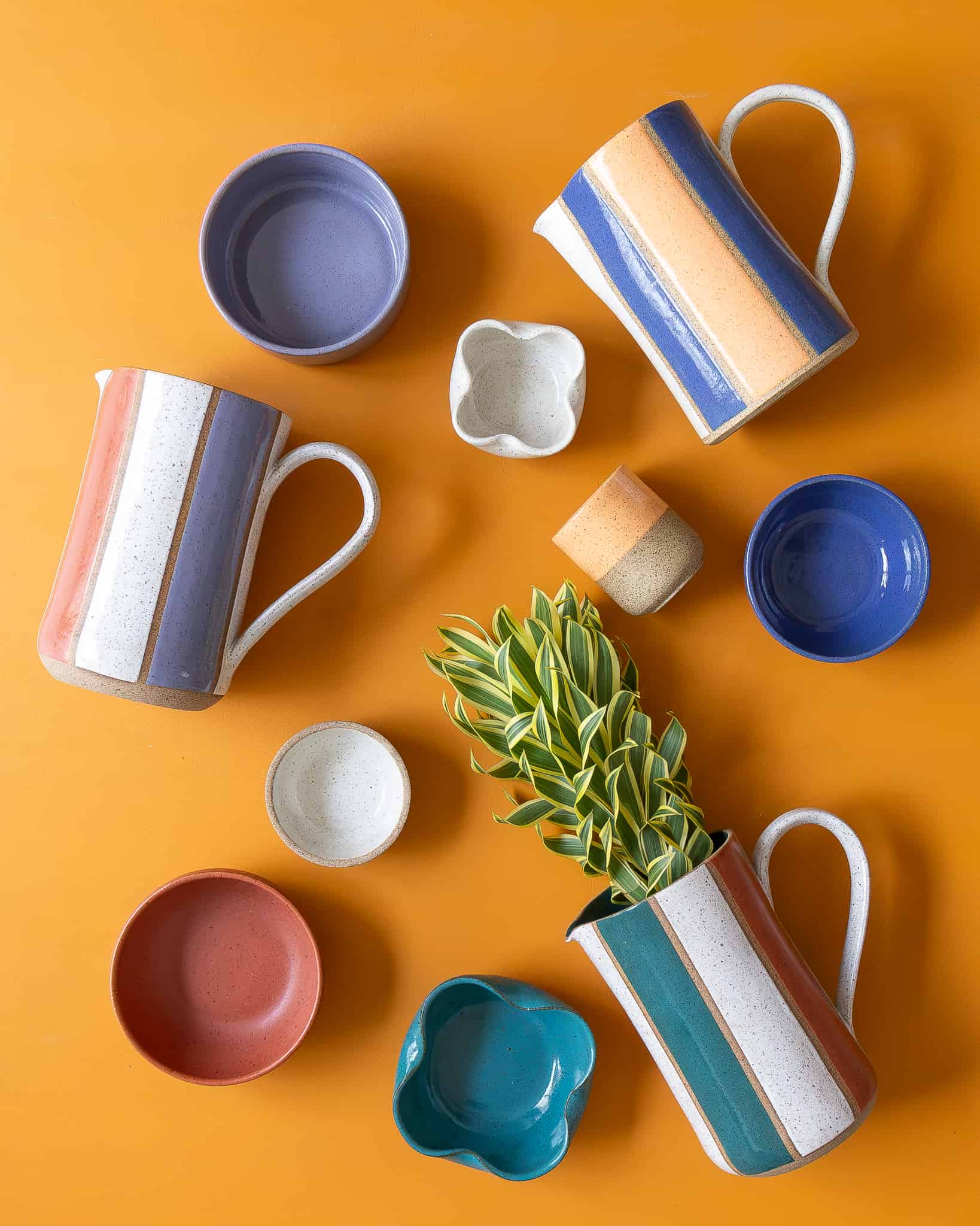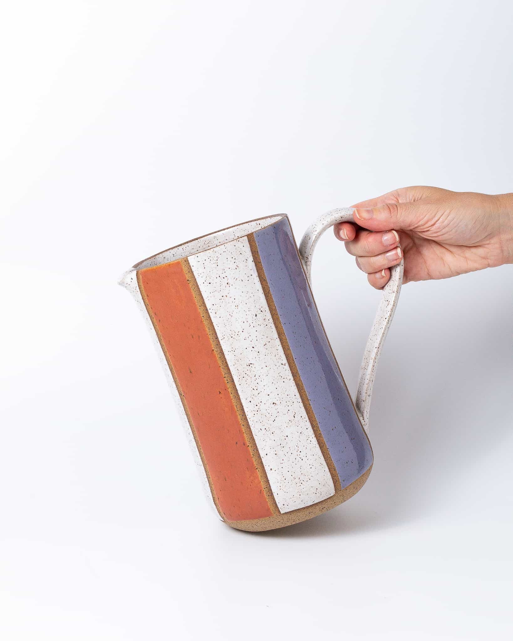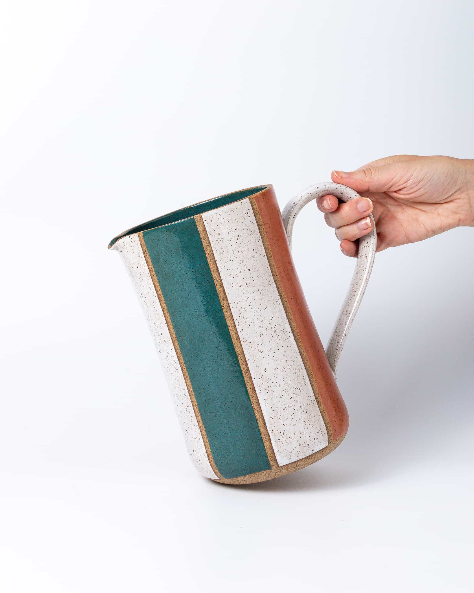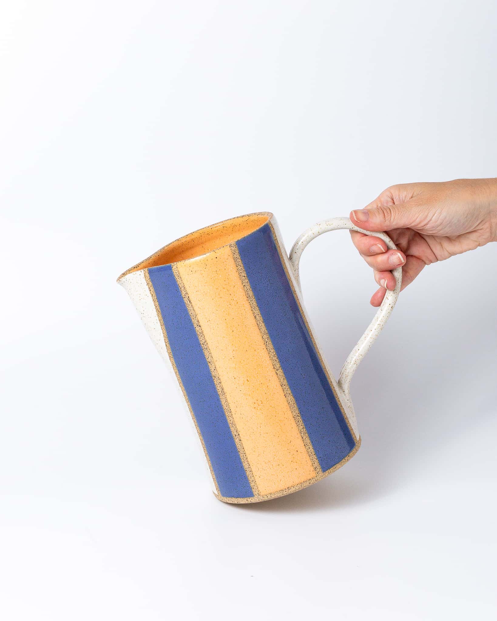 Inspiradas no coração de Lisboa, as Jarras Alfama trazem o encanto das fachadas coloridas, das ruas de pedra e da tradição artesanal portuguesa. Feitas à mão, com listras vibrantes e acabamento rústico, elas são a expressão perfeita do encontro entre a tradição e o contemporâneo.