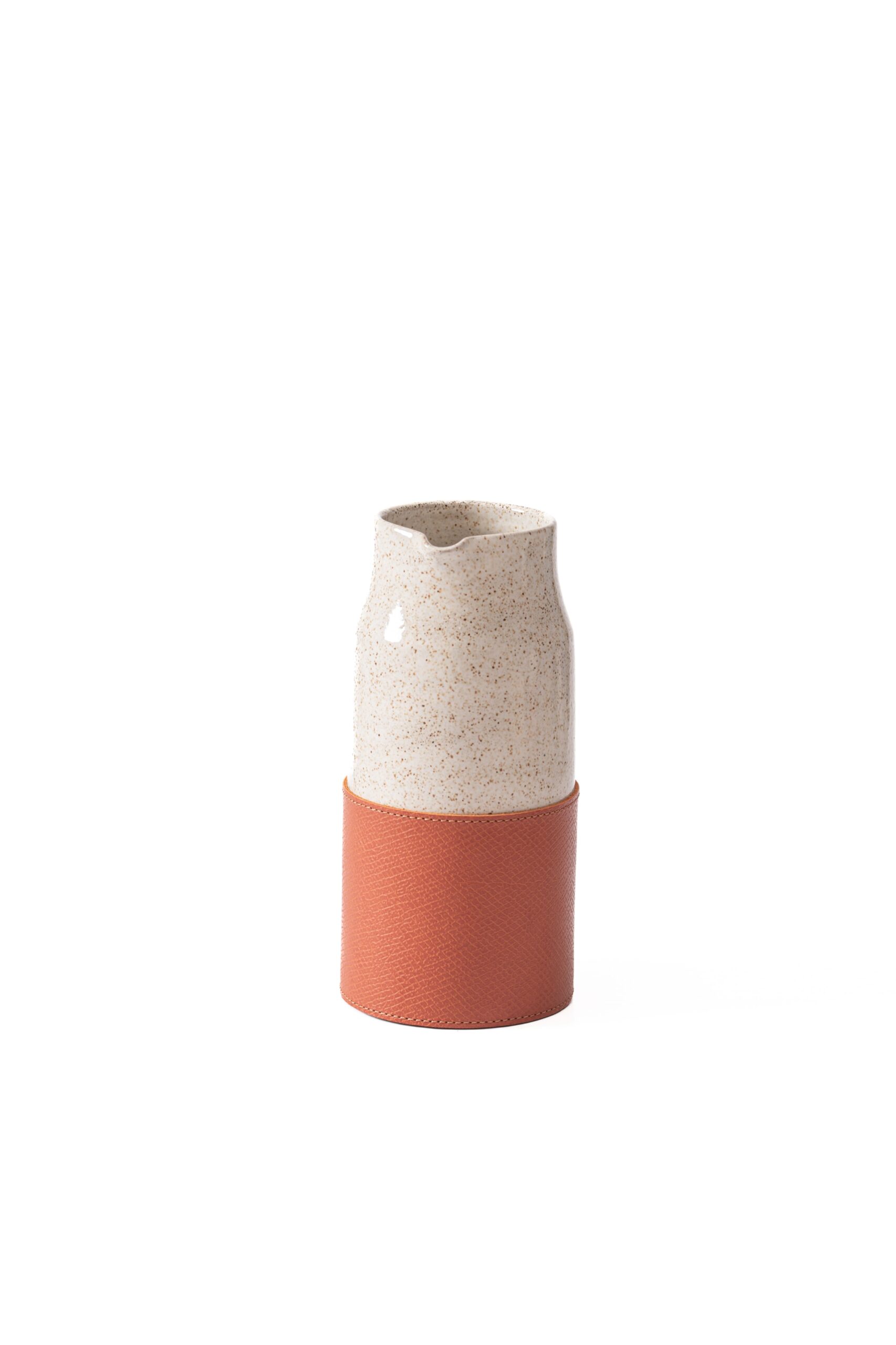 Jarra de cerâmica e capa em couro natural removível, em 5 opções de couro.