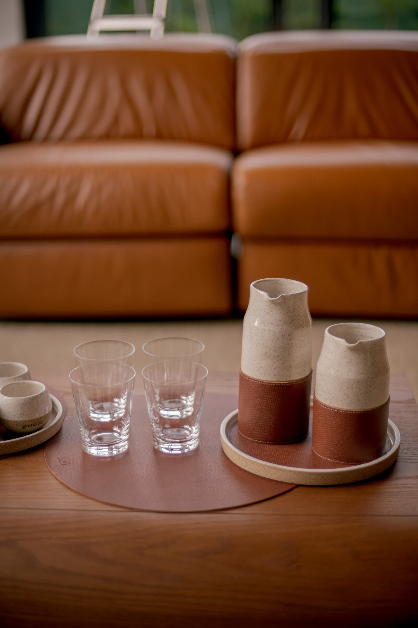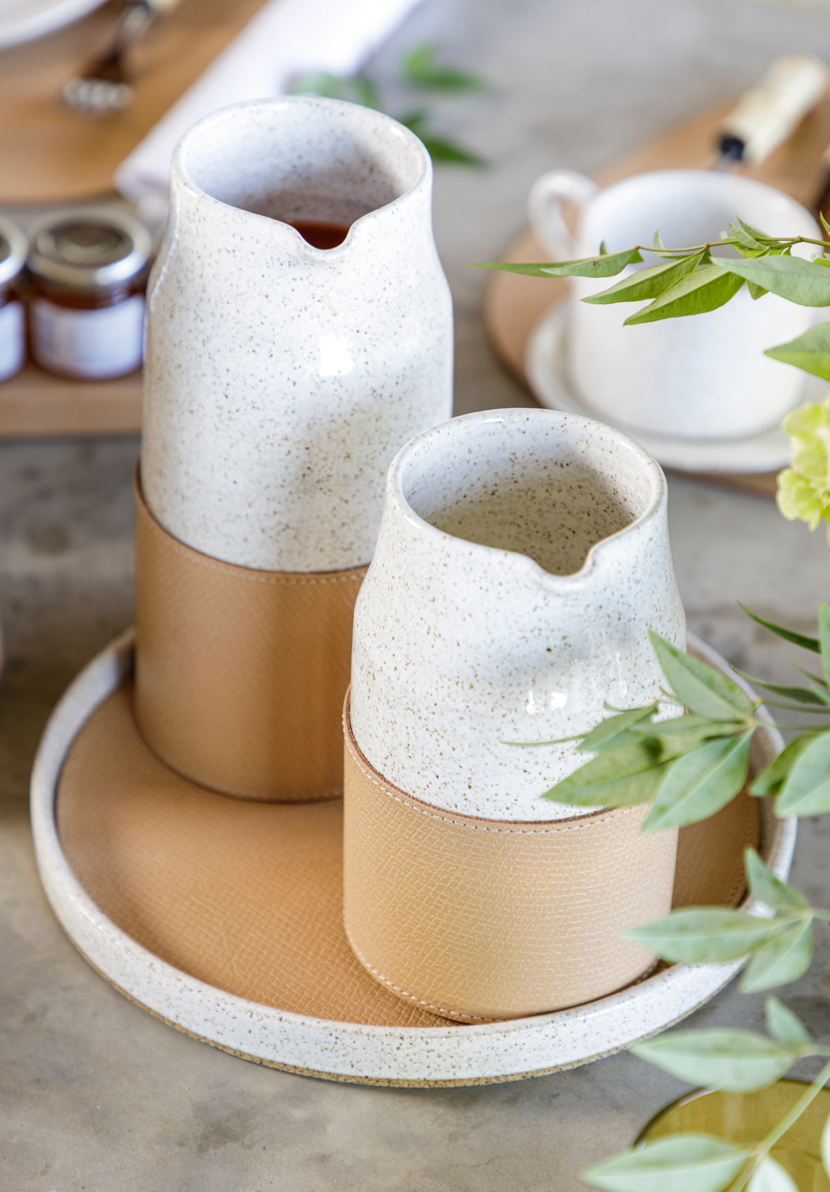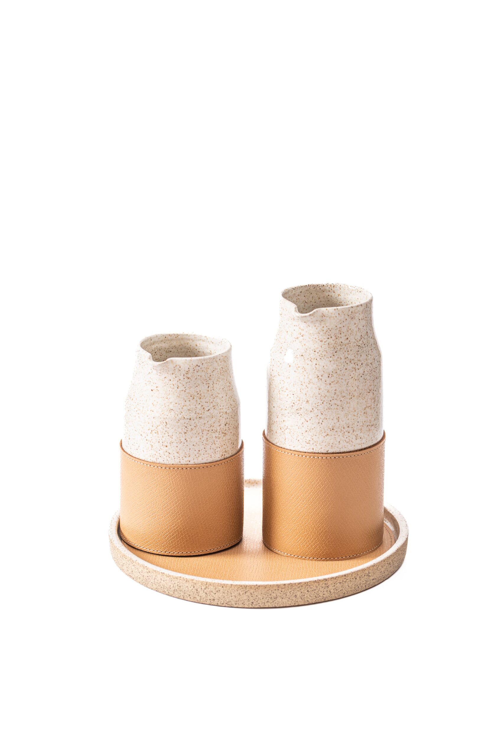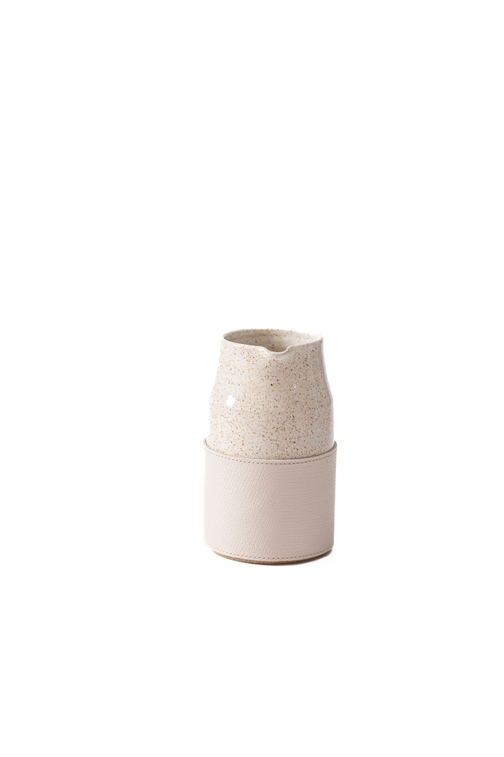 Jarra de cerâmica e capa em couro natural removível, em 5 opções de couro.