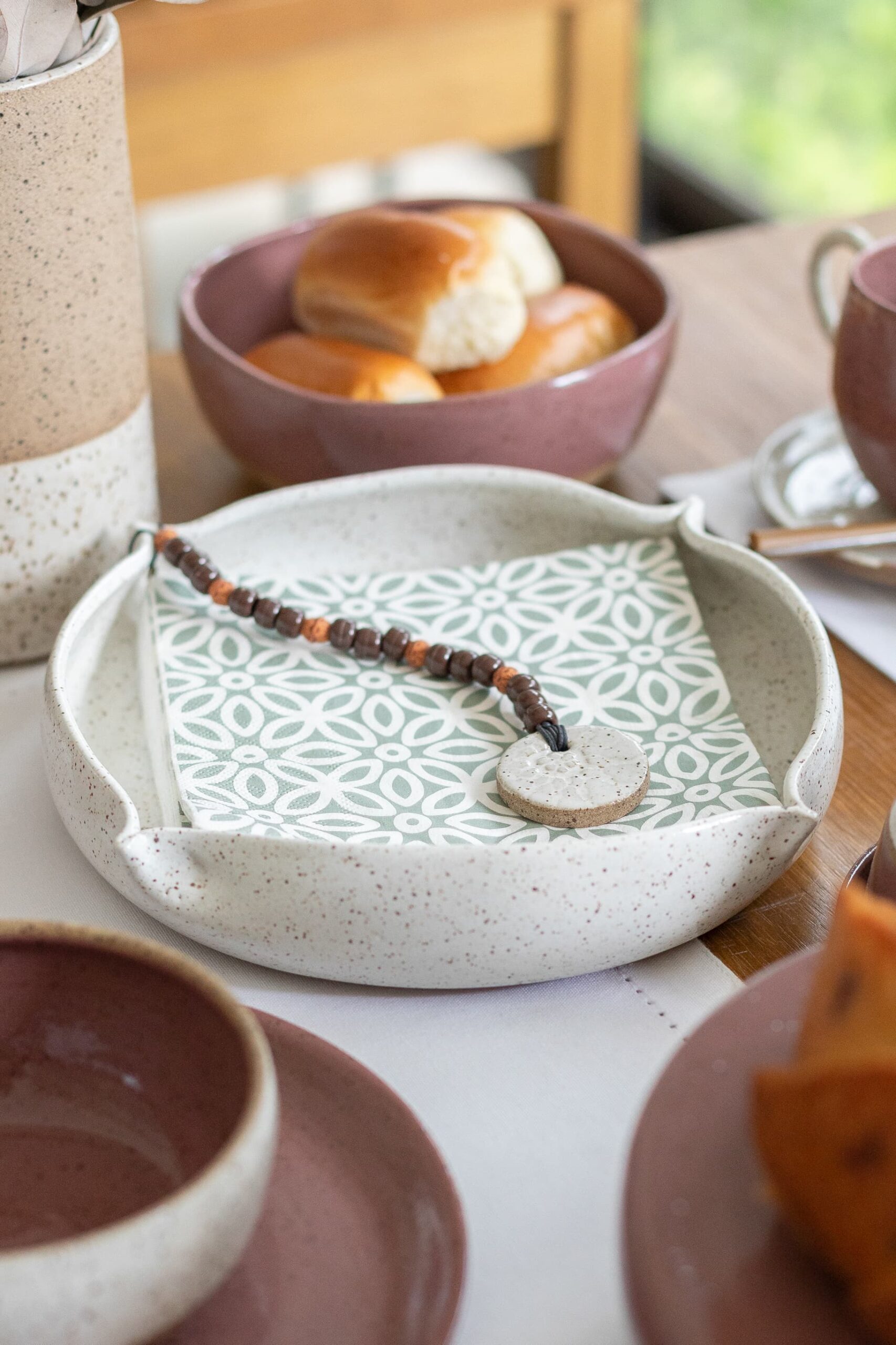 Porta-guardanapos para encaixar os guardanapos de papel ou aperitivo, com fio de miçangas decorativas e medalha em cerâmica. Ideal para guardanapos de papel no tamanho pequeno (22,7 cm x 22,8 cm).