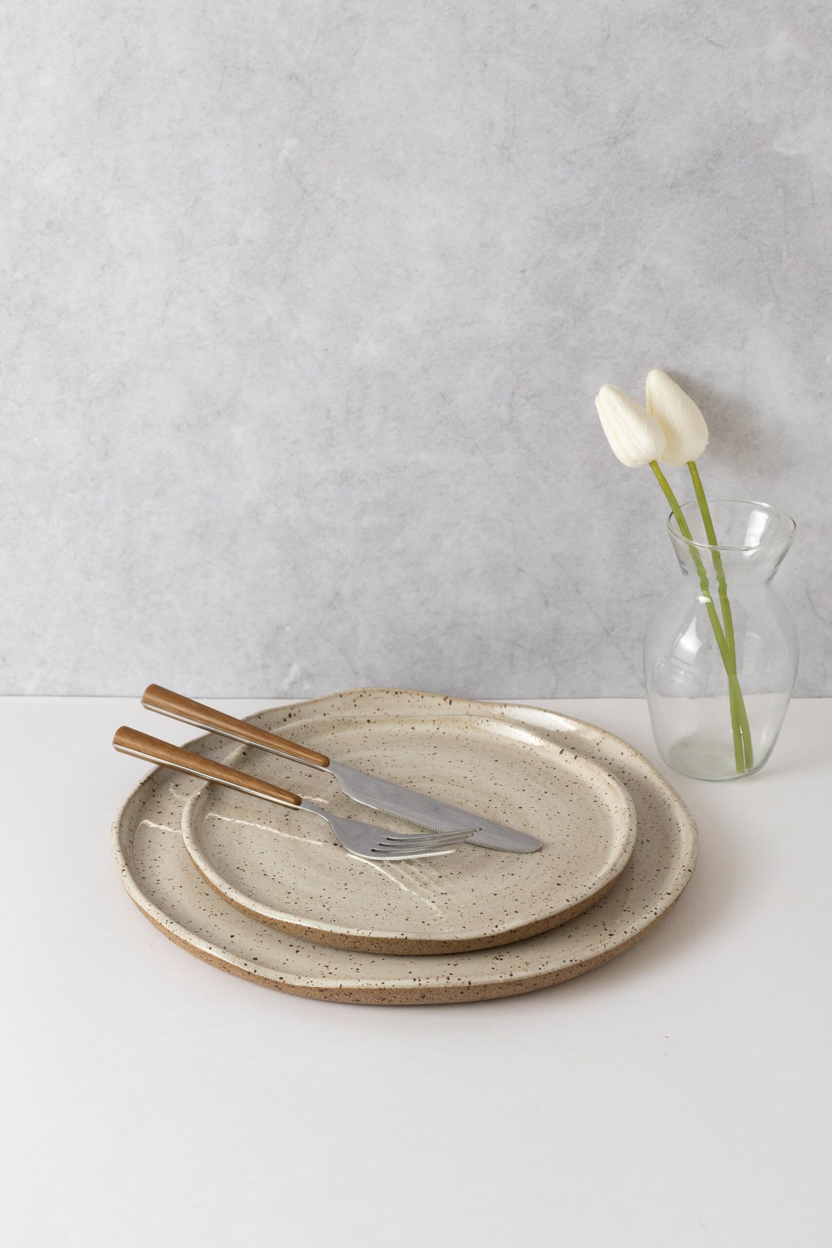 Pratos refeição linha wave, com as bordas irregulares. Um toque artesanal a qualquer mesa.