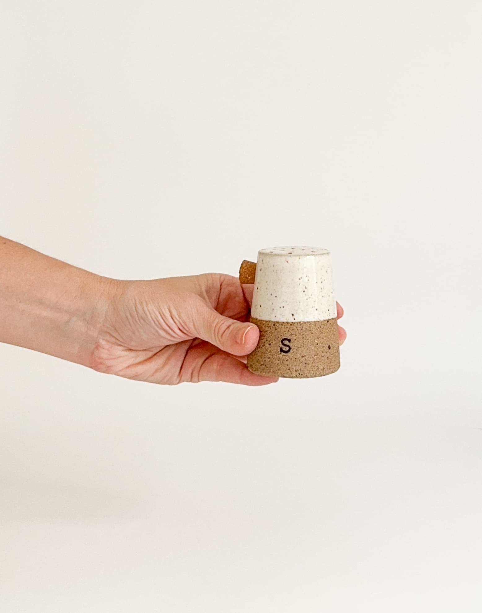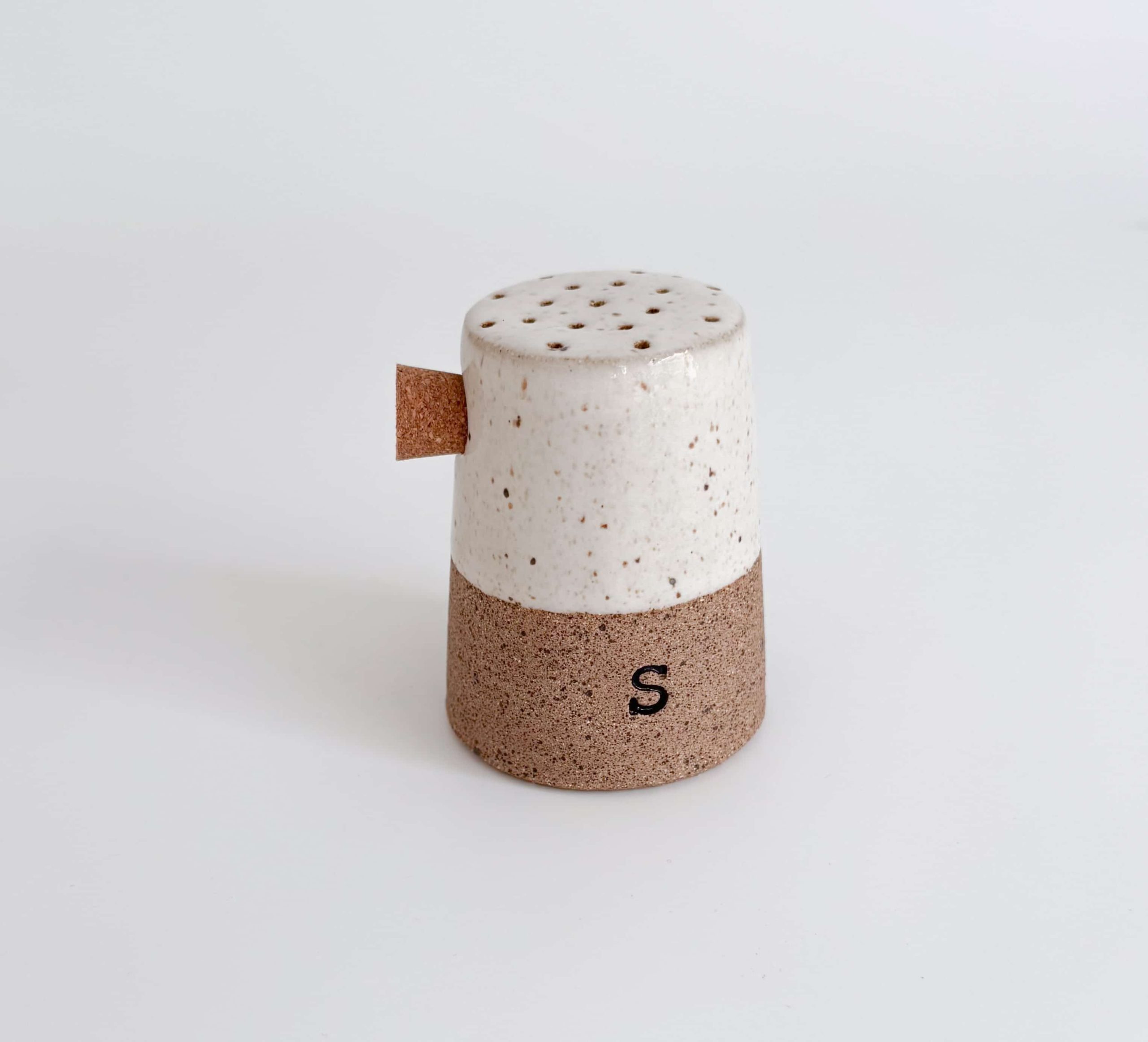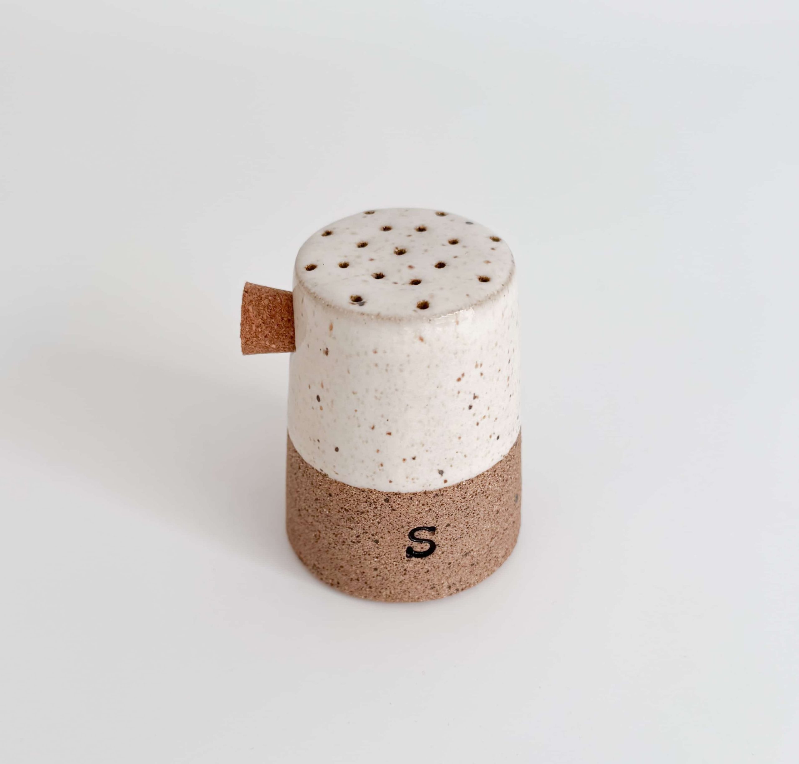 Saleiro em cerâmica artesanal. Combina rusticidade e sofisticação para compor a mesa com elegância. Possui uma pequena rolha lateral que facilita o reabastecimento, sem comprometer o design da peça.