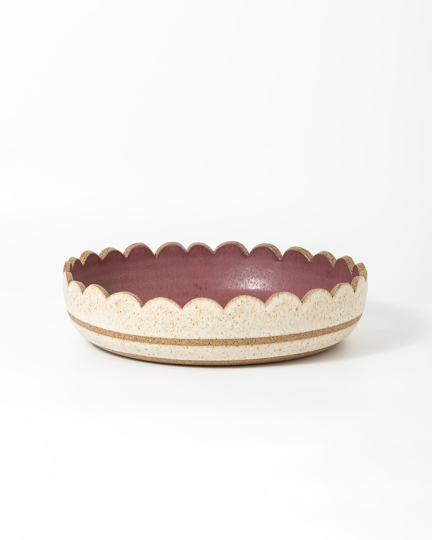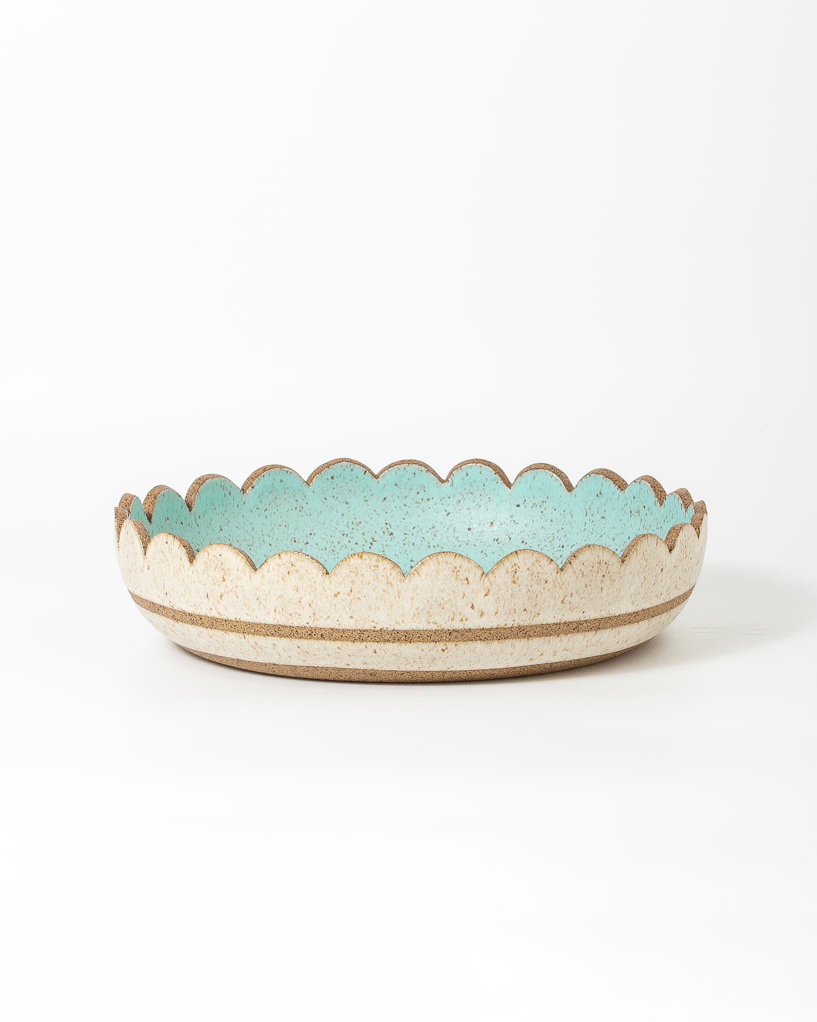 Com formato arredondado e bordas onduladas, a travessa Raia Curva combina leveza e volume na medida certa. Ideal para servir no almoço ou jantar: de saladas e legumes a carnes e acompanhamentos, com um toque orgânico e delicado à mesa.