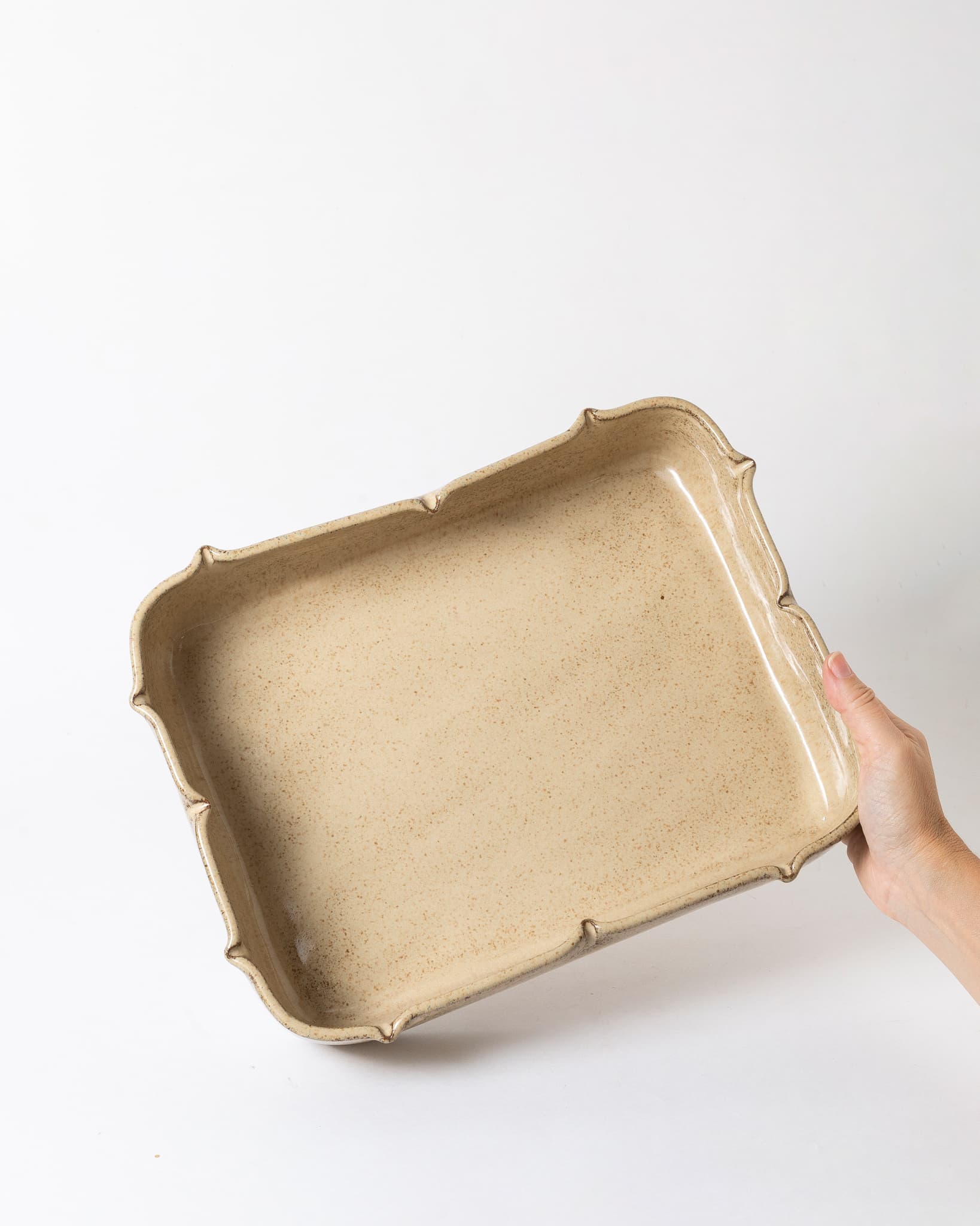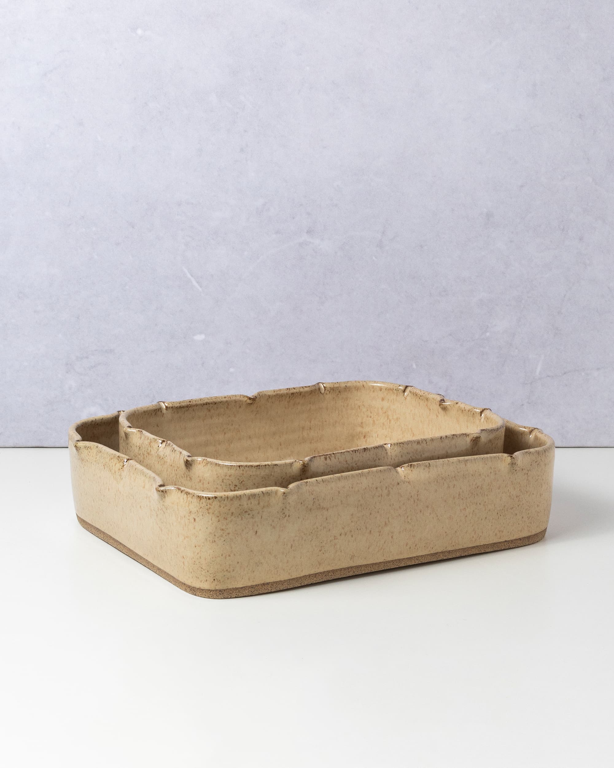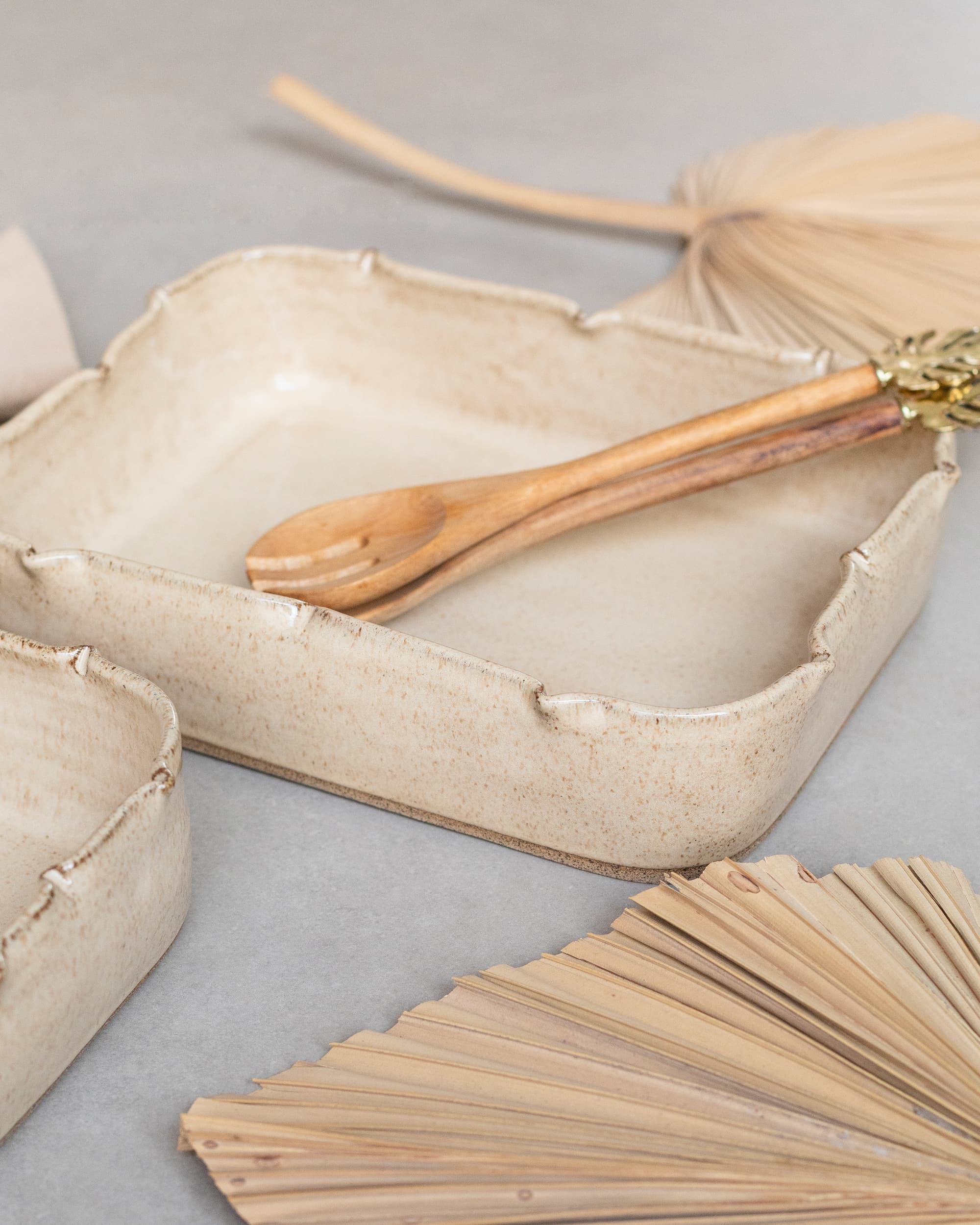 Travessas que acrescentam um toque artesanal a qualquer mesa. Travessas Braga. Ideal para grandes porções. Em dois tamanhos diferentes, são peças curinga na hora de levar as refeições à mesa. Faça suas marinadas, assados e massas nessas travessas.