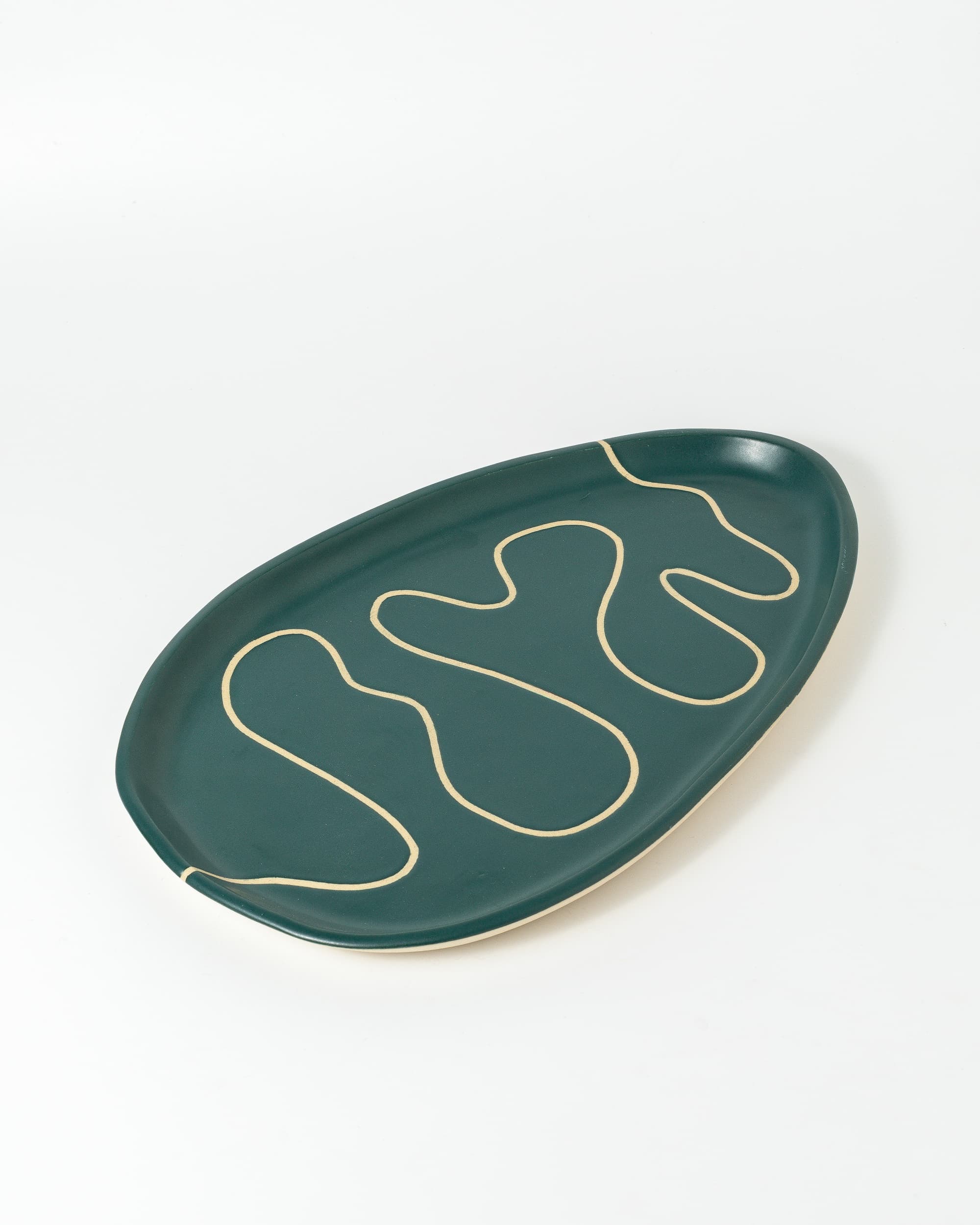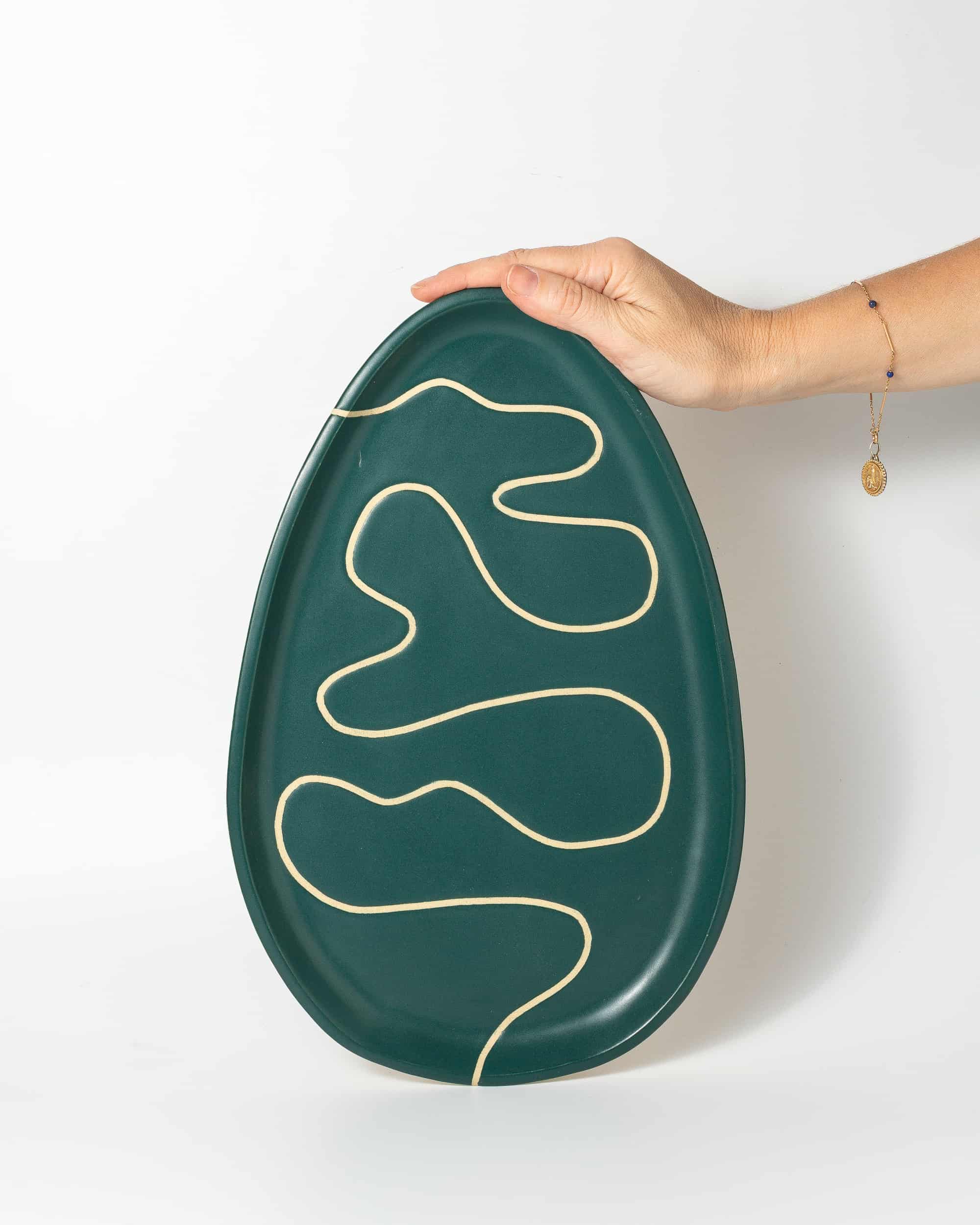 A travessa traço natural foi desenvolvida para a Páscoa desse ano de 2026 em formato orgânico que remete ao ovo — símbolo maior da Páscoa. Em 2 cores (chocolate e verde mata) e com desenhos orgânicos que tornam cada peça única.