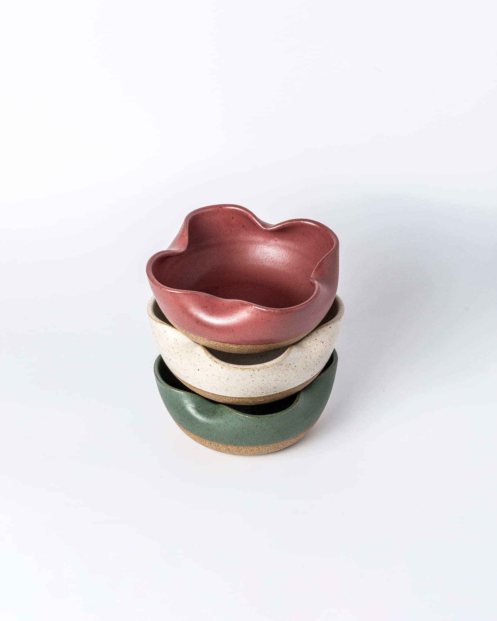 Em 3 cores diferentes, sempre chamam a atenção pelo design super charmoso. Detalhe especial na borda, feito à mão, e a característica marcante desse nosso modelo inconfundível. Sem dúvida, nosso best seller! Tamanho ideal para porções pequenas, sobremesas, frutas, cereais ou nuts. Cores: branco acetinado, beterraba e verde Serra. Acompanha caixa cartonada.