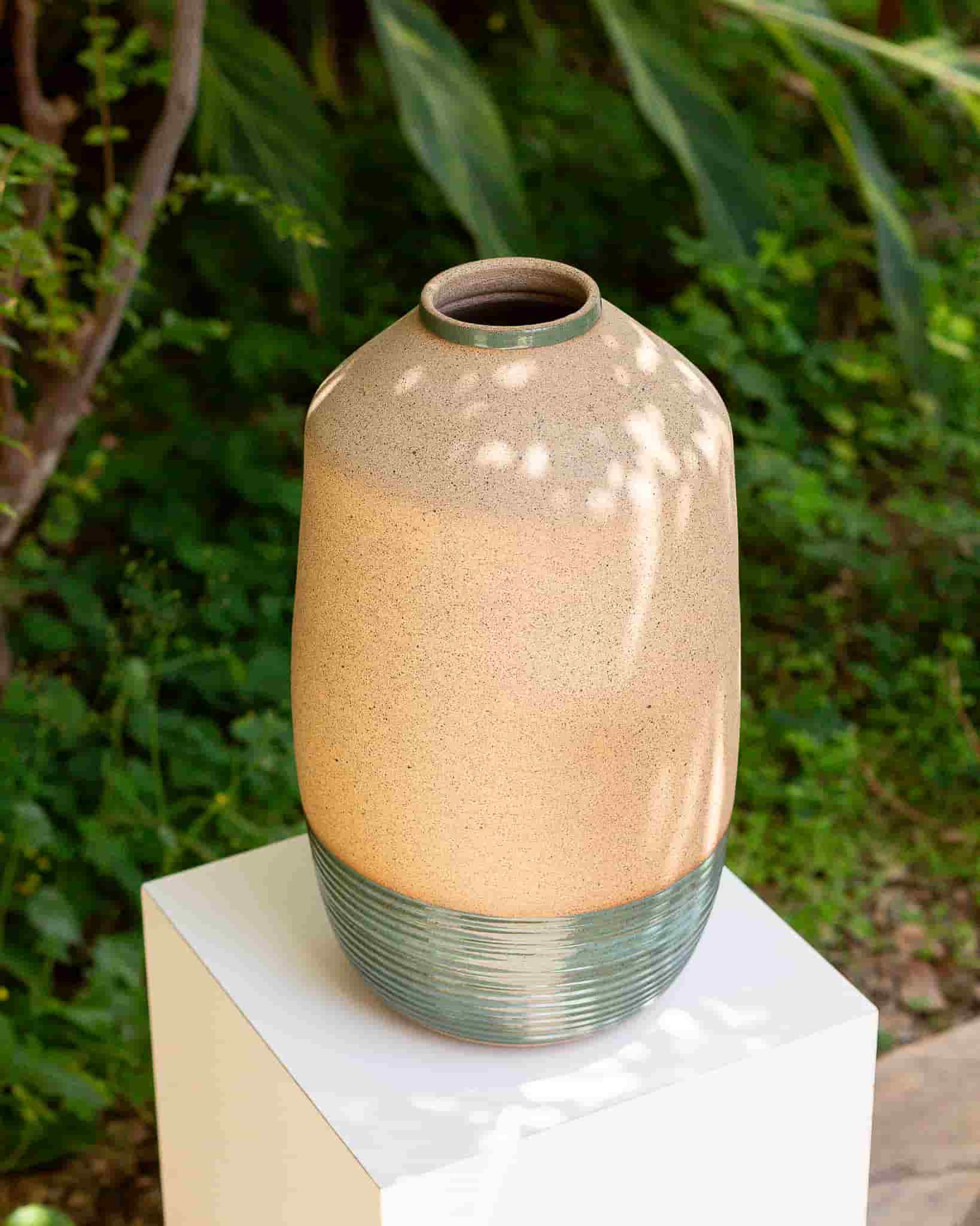 Os vasos da linha Fidalga trazem a mesma leitura de forma e acabamento, mas em uma escala mais versátil, que funciona tanto apoiado no chão quanto sobre móveis, aparadores ou bases. É um vaso que se adapta com facilidade, mantendo presença sem pesar no ambiente.