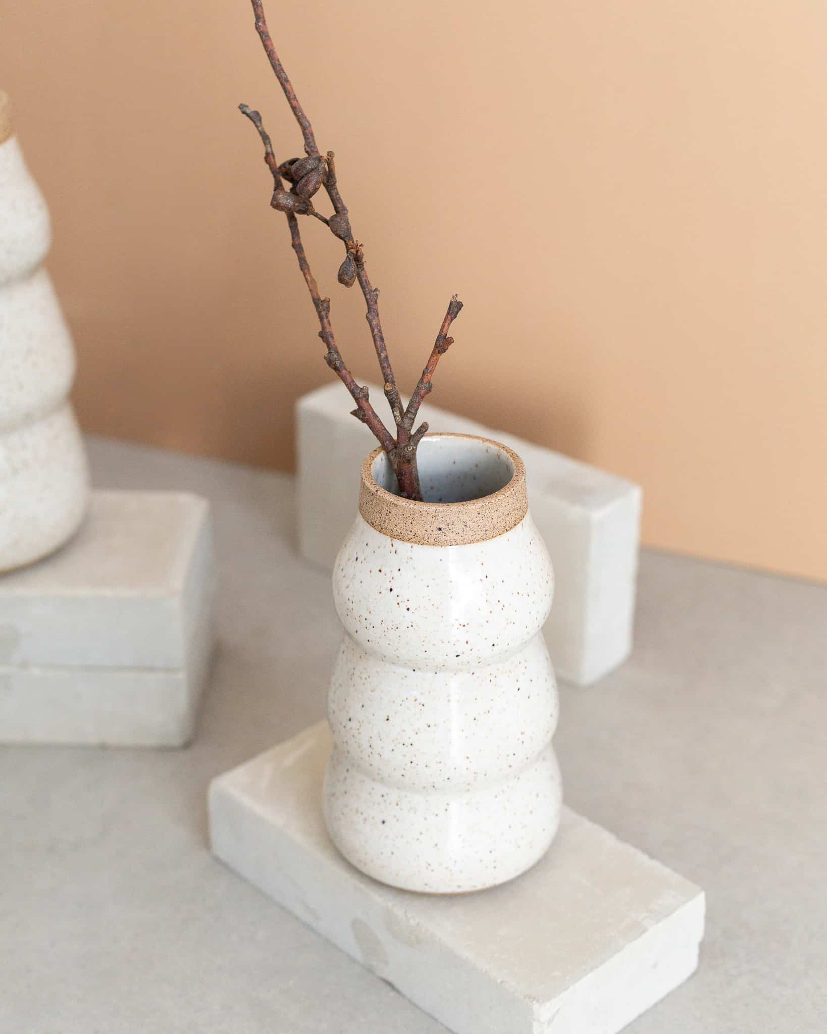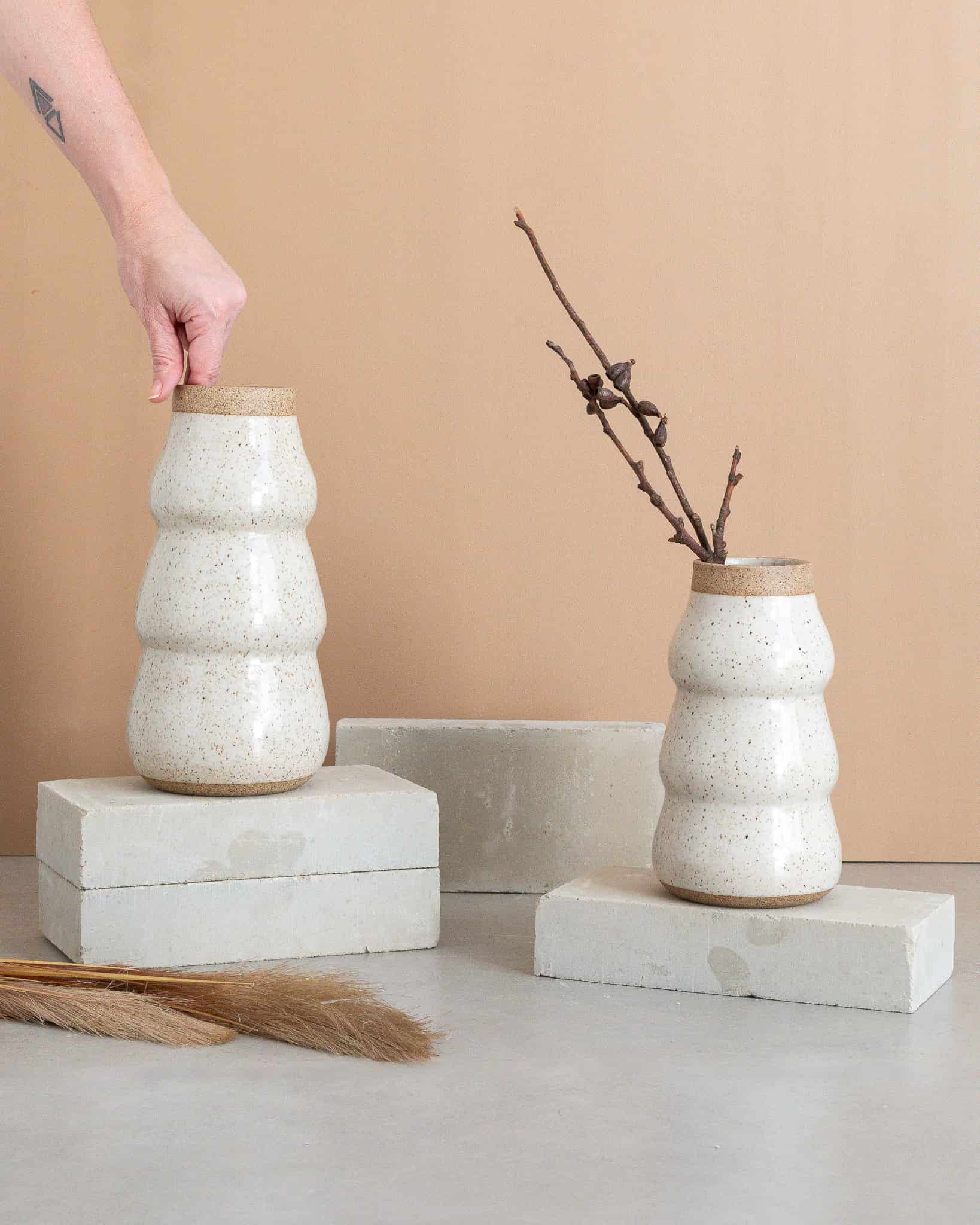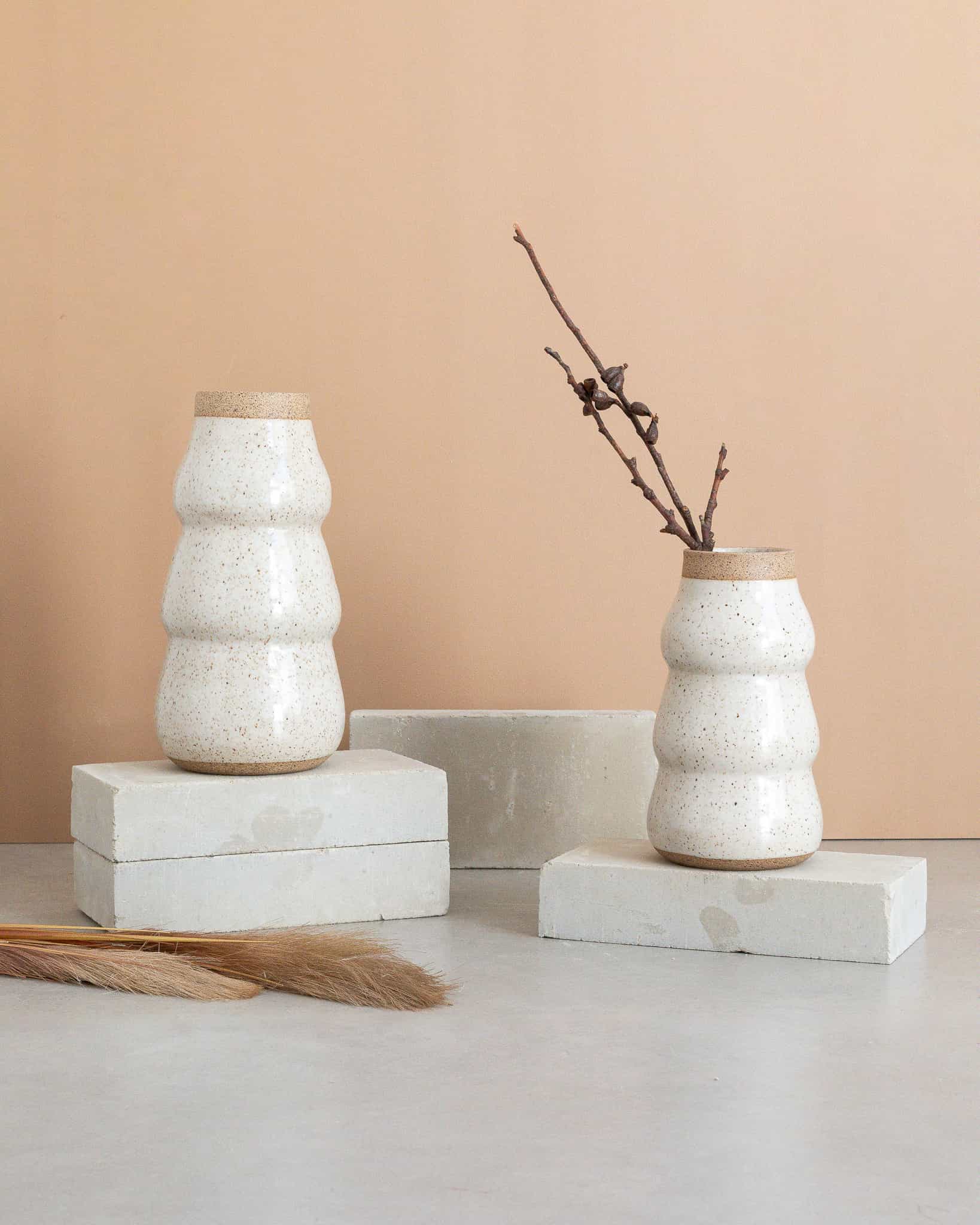 Um design marcante com linhas orgânicas e ondulações marcadas, o Vaso Gomo traz um visual rítmico e contemporâneo. Modelado à mão, versátil e atemporal, ele pode ser usado como vaso decorativo, suporte para arranjos florais ou simplesmente como um objeto de destaque na decoração. Disponível nos tamanhos P e M.