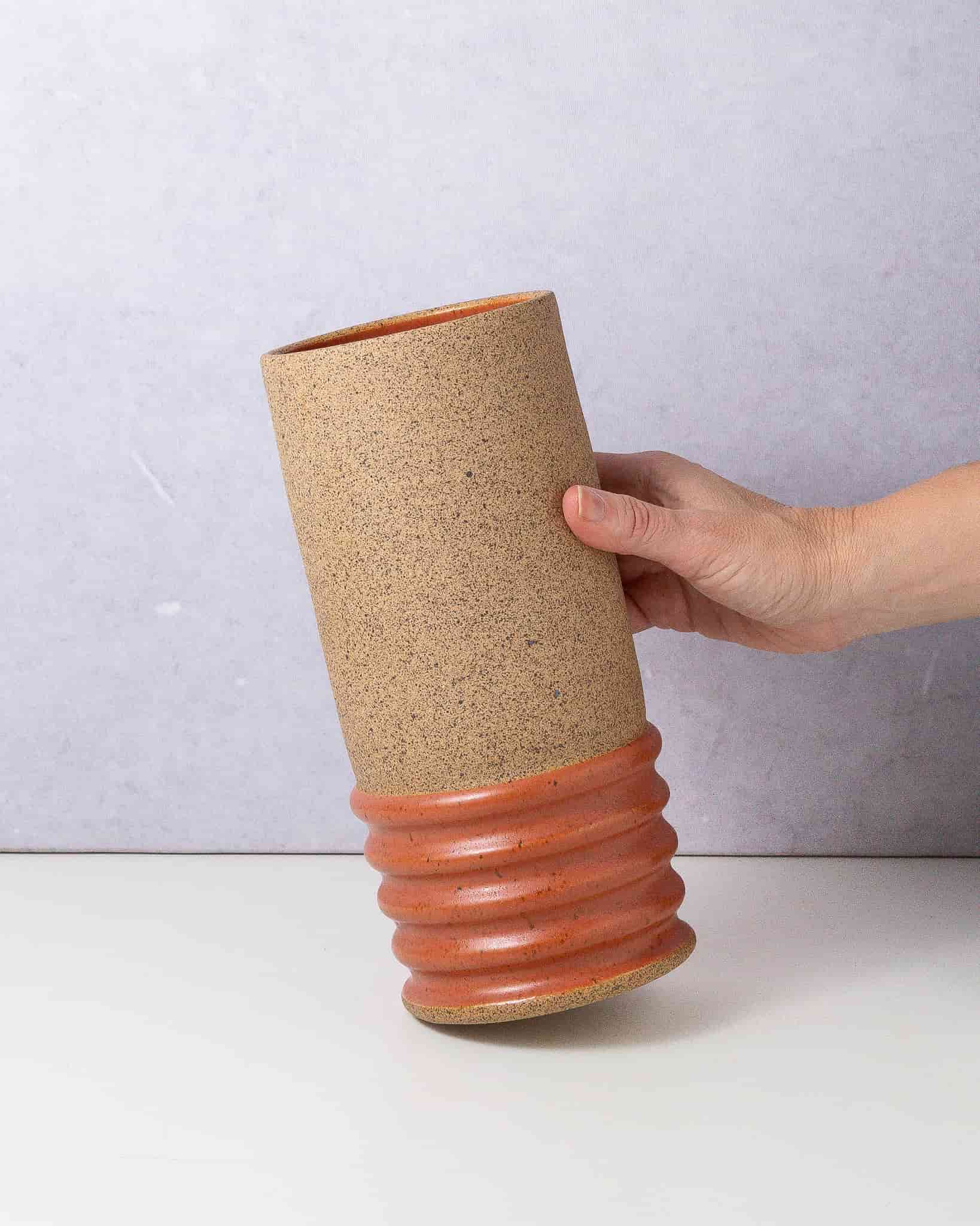 O RIB nasceu da vontade de destacar aquilo que mais encanta no trabalho manual: os pequenos ritmos que a argila cria enquanto toma forma. O Rib G traz o contraste entre a superfície lisa e a base em relevo, criando um jogo equilibrado entre calma e movimento. Ideal para flores e folhagens.