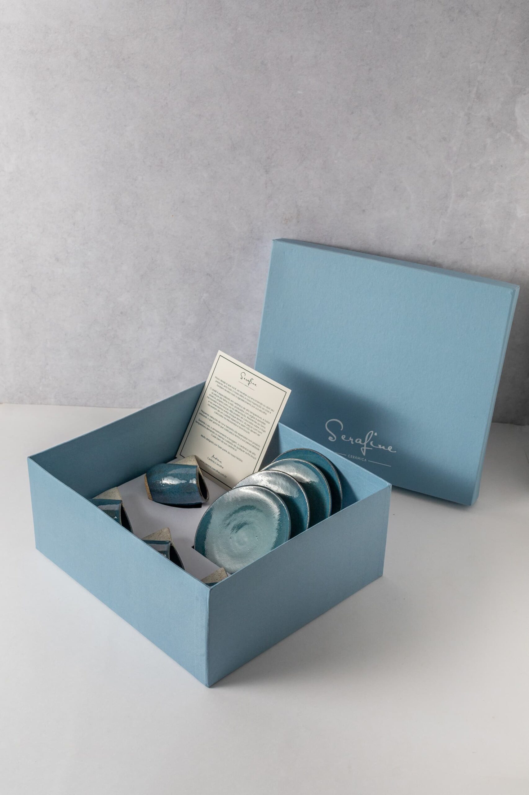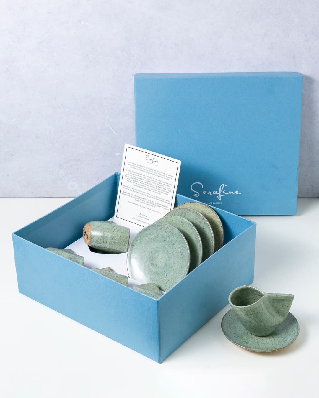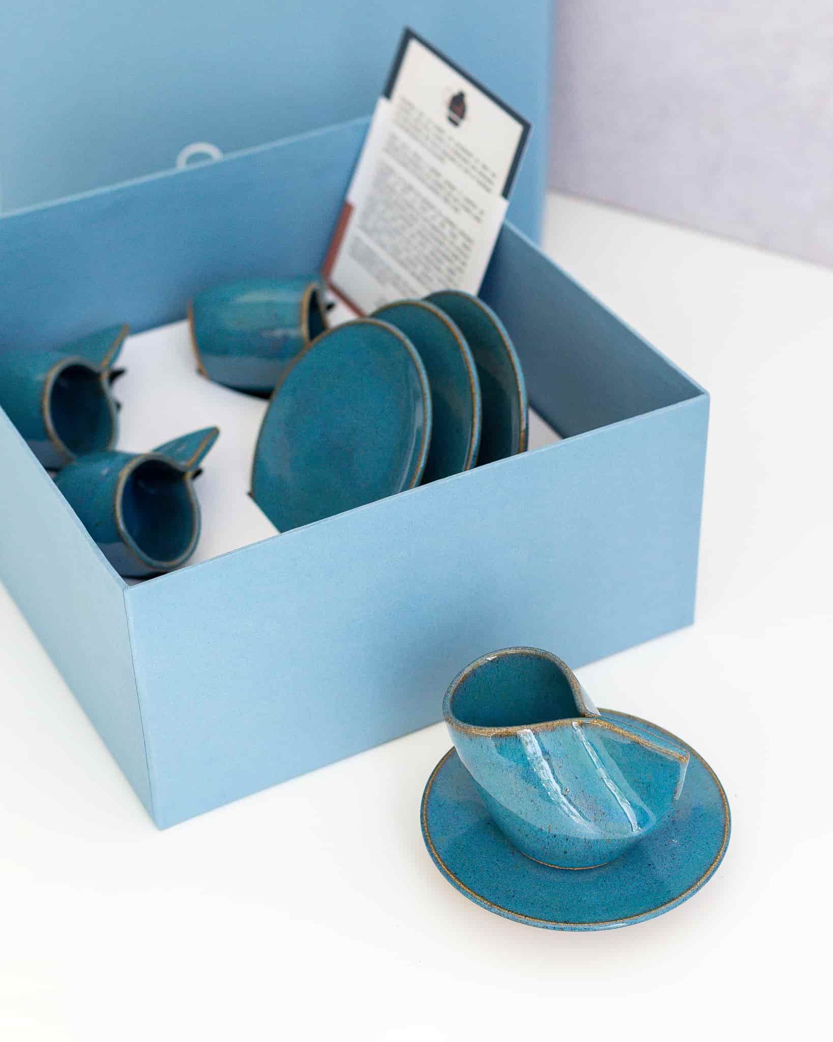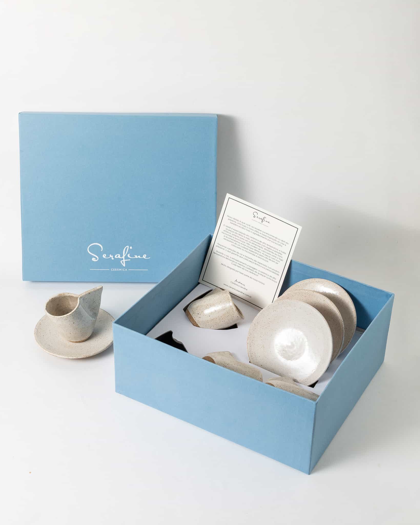 Jogo de 4 xícaras Andorinha com pires. Num formato charmoso e tamanho especialmente desenvolvido para café curto ou sua bebida favorita. Para servir bebidas quentes ou frias. Nessa linha “Special Gift”, as peças acompanham a caixa de presente personalizada. Para registrar momentos especiais e datas comemorativas ao longo do ano.